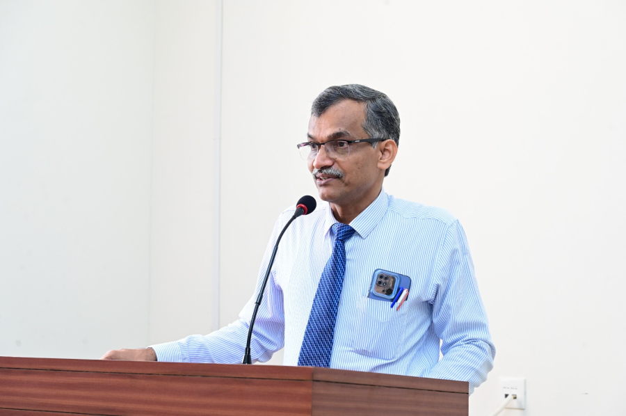 The outgoing Principal, Dr. Shivashankara A. R., addressed the gathering and expressed his gratitude to the Administrator, the Director, and all for their support during his tenure.