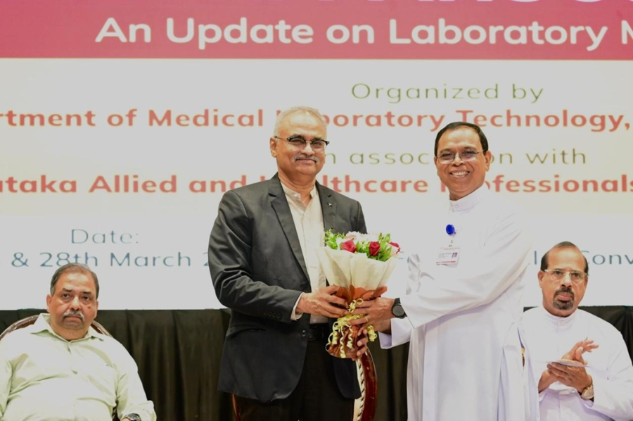 In his presidential address, Rev. Fr. Faustine Lucas Lobo, Director Father Muller Charitable Institutions (FMCI) warmly welcomed the delegates and commended the organizers for their efforts. He highlighted the indispensable role of laboratory technicians in clinical diagnosis, noting that accurate laboratory reports form the backbone of effective treatment. He stressed that healthcare today is a collective effort, with allied health professionals playing a crucial role. He urged technicians to remain vigilant, dedicated, and continually update their knowledge, recognizing their contribution to saving lives.