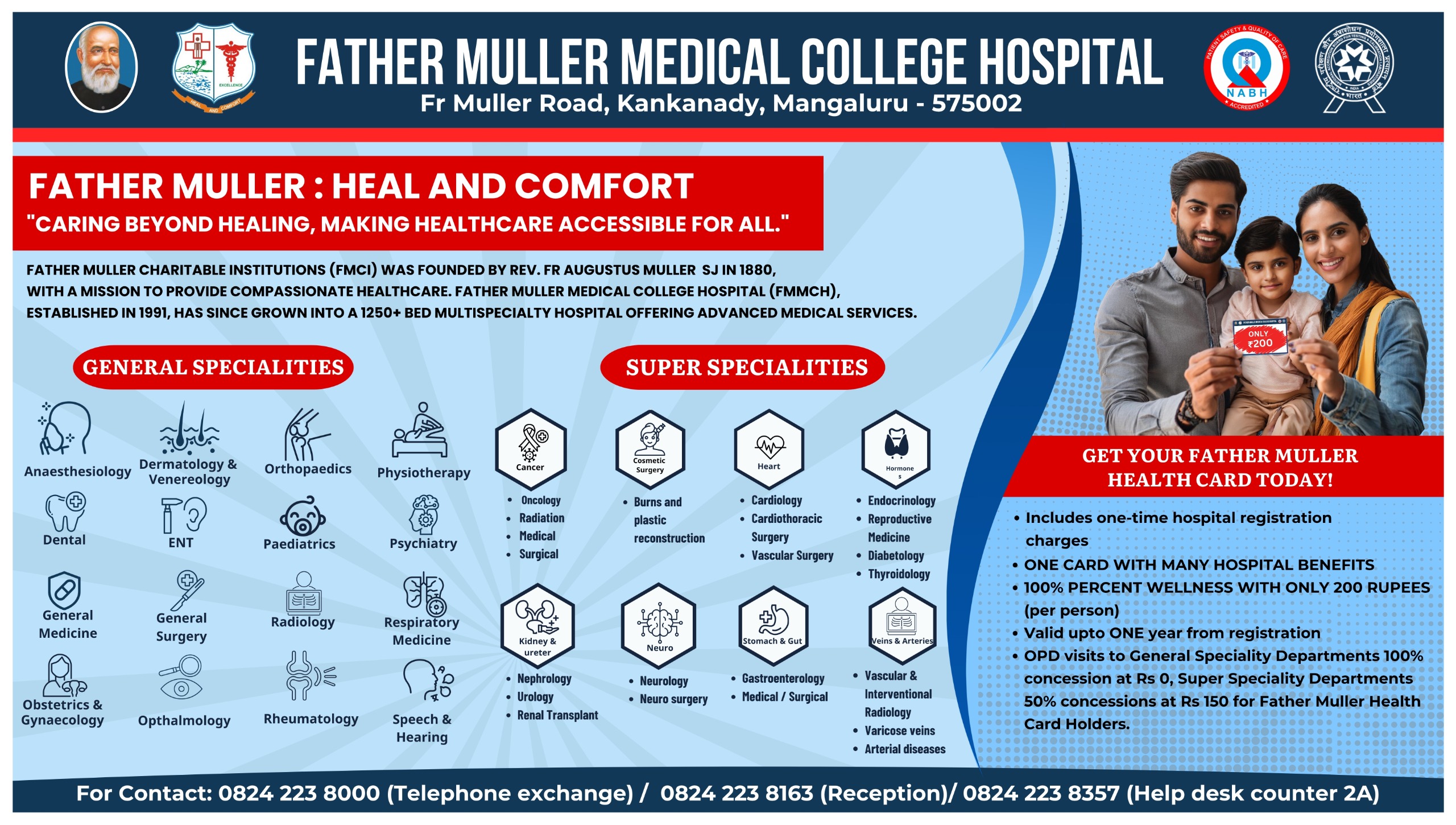 This Card will be applicable for those getting admitted/treated as Father Muller Hospital patients only.