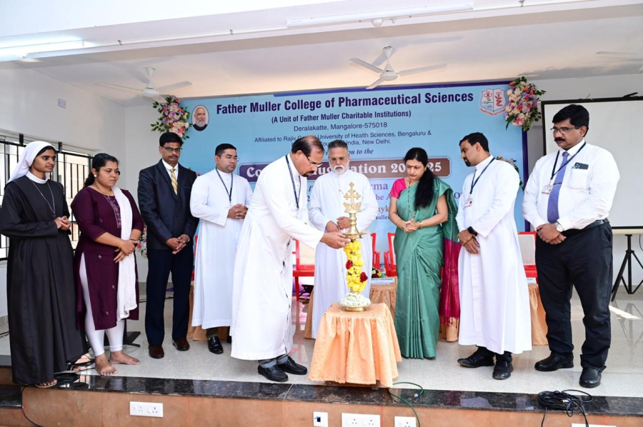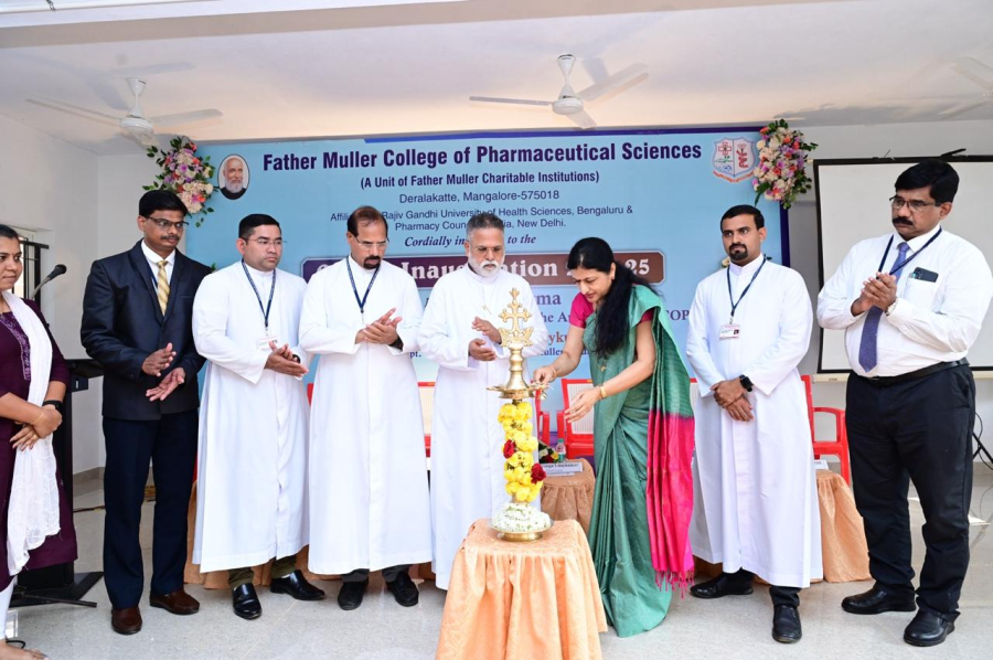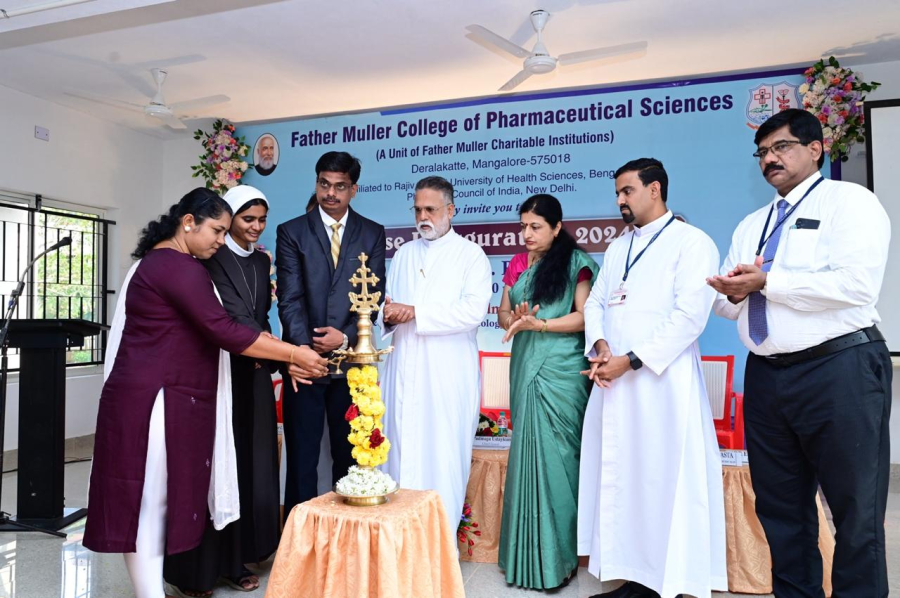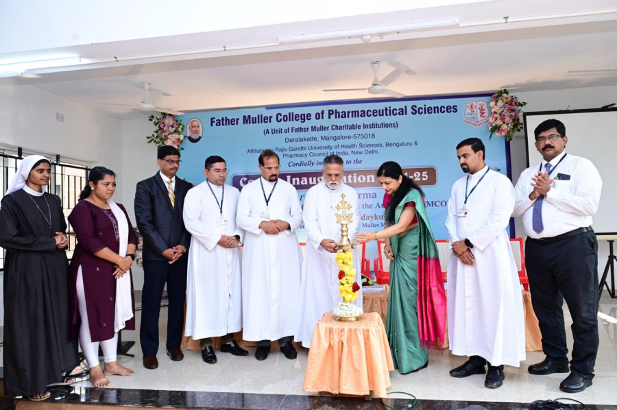 The Father Muller College of Pharmaceutical Sciences (FMCOPS), Deralakatte, Mangaluru, a unit of Father Muller Charitable Institutions, marked a significant milestone on Monday, 7th October 2024, with the inauguration of its 2024-25 academic year and the commencement of its 1st batch of Bachelor of Pharmacy (B.Pharm) students. The grand event took place in the new auditorium within the newly constructed FMCOPS building.