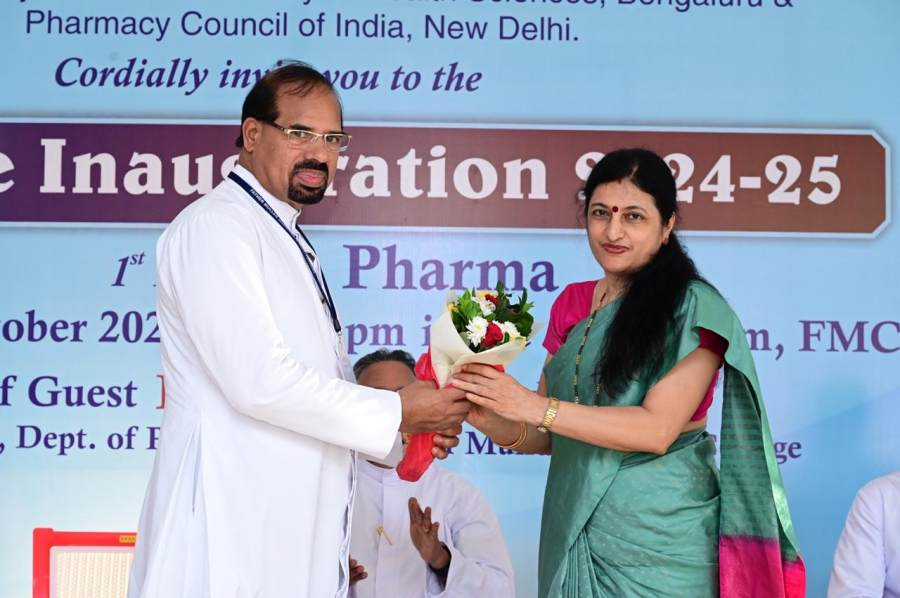 Fr. Faustine Lucas Lobo, in his message as the Administrator of FMCOPS began with the quote "One more feather to the illustrious institution" and highlighted the journey of FMCI as one focused on value- based education, forming individuals for India and the world. He urged the new batch to carry the values of brotherhood, compassion, and peace and to become global citizens who can lead lives of purpose and integrity. Fr. Lobo also expressed his appreciation for the vision of FMCI's Fr. Coelho in making the dream of a pharmacy college come true and Dr Padmaja's efforts for networking with the right people for the completion of this dream turned to reality.