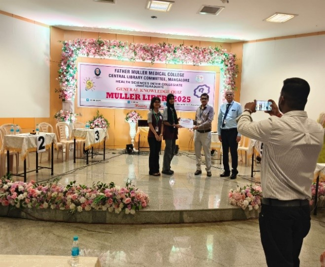 On the occasion of National Library Day, Father Muller Medical College organized “Muller Liber 2025 – Health Sciences Inter-Collegiate Undergraduate General Knowledge Quiz” on 23rd August 2025 at 8:30 am in the Knowledge Centre, FMCI Campus, Mangalore.