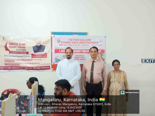 The momentum continued on 22nd September 2025 with a health awareness camp at Mangalore Central Railway Station, supported by Chief medical Officer Dr Swathi and Mr Santhosh atteneded by the Director FMCI and Dean of Father Muller College.