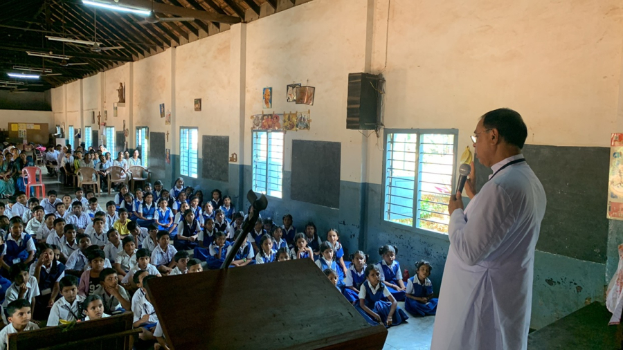 Rev. Fr. Dr. Micheal Santhumayor, Administrator, delivered the presidential address, while Prof. Wilma Noronha highlighted the significance of the day. The school Headmistress, Mrs. Savitha Mascarenhas, expressed heartfelt gratitude to the management of FMCI. The event was graced by Prof. Sr. Dhanya Devasia, Principal, Father Muller College of Nursing; Dr. Anil Shetty, HOD, Department of Pediatrics, Prof. Cynthia Santhumayor, Principal, Father Muller College; Dr. Josmitha Dsouza and Ms. Preema Pinto, organizing chairpersons, along with faculty members from the department.