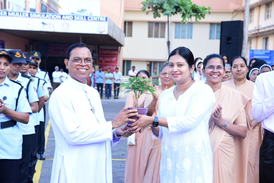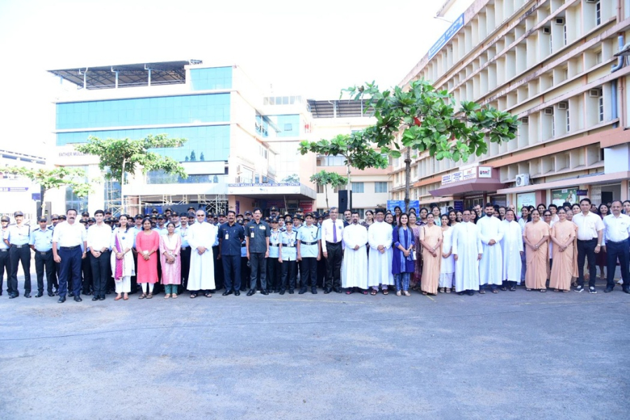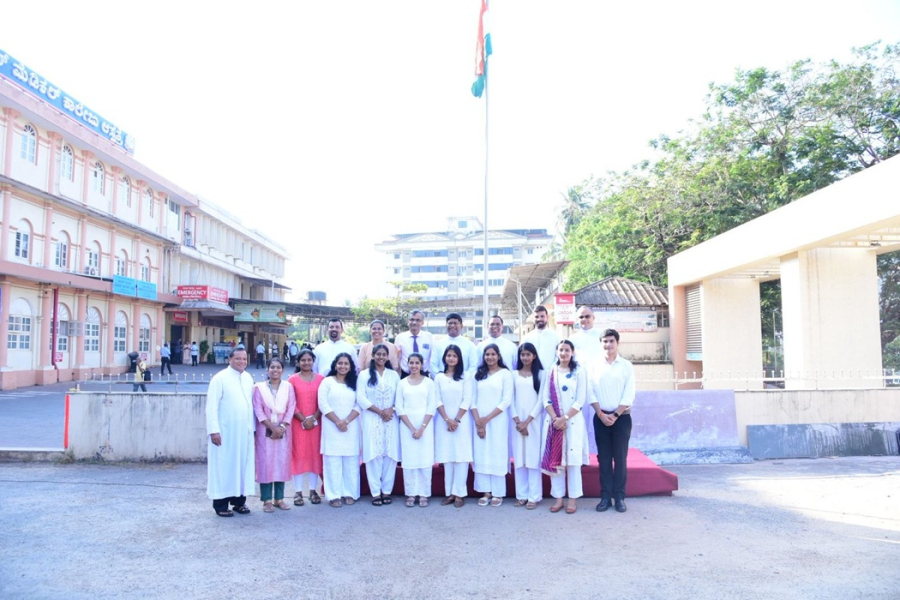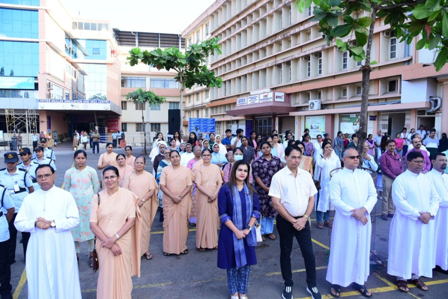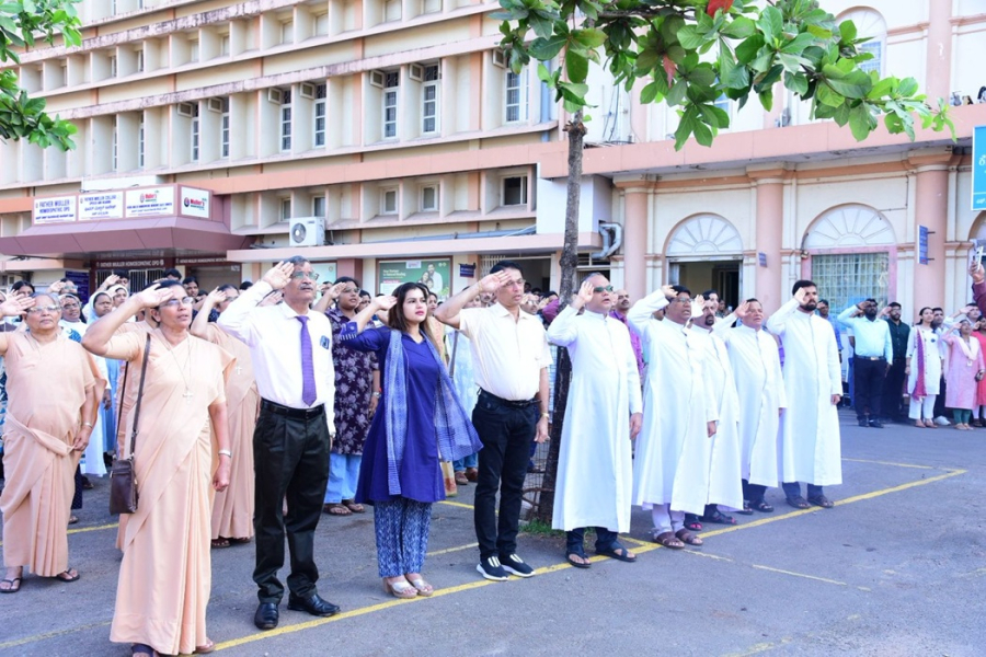 Members of the Management Committee, Advisory Board, and the Father Muller Charitable Centenary Society, along with faculty, staff, students, and well-wishers, gathered in large numbers, standing together in reverence and national pride. Patients and their attendants also joined the observance, pausing in respect as the National Anthem was rendered, reflecting the inclusive spirit of the occasion.