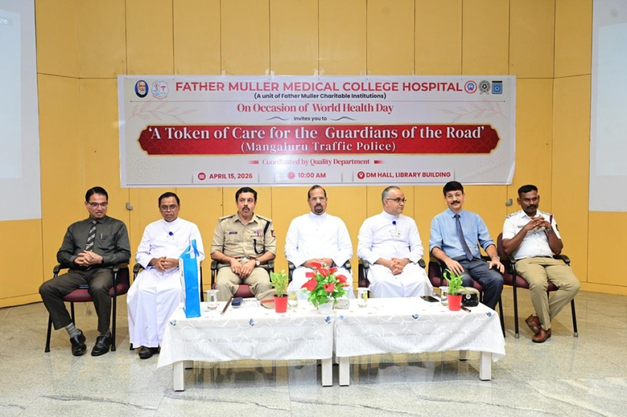 Father Muller Medical College Hospital (FMMCH) observed World Health Day 2026 with the theme “Together for Health: Stand with Science.” The highlight of the event was a health awareness programme titled “A Token of Care for the Guardians of the Road,” organized by the Quality department for the Mangalore Traffic Police personnel on 15th April 2026. With over 150 Traffic police participating in this ‘self-health’ awareness initiative.