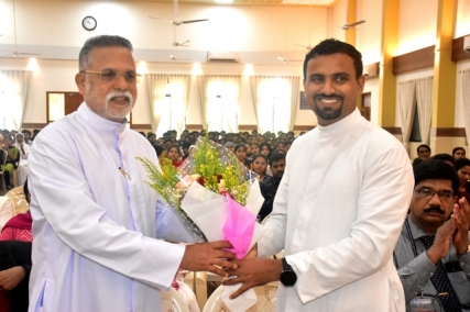 presented the floral bouquet to Rev Fr Richard Aloysius Coelho and Dr Prabhu