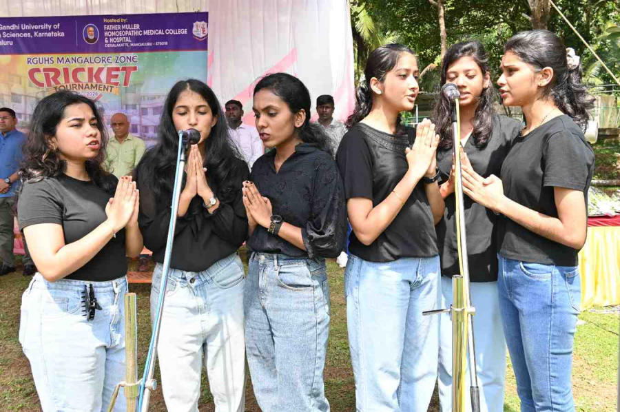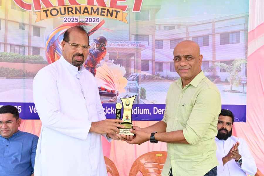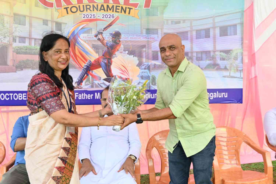 The inaugural programme commenced with a melodius invocation by Miss Shreya and team. Director Rev Fr Faustine Lucas Lobo Inaugurated the tournament on 17thOctober 2025 at Father Muller Stadium of the college. Rev. Fr Donald Nilesh Crasta, Administrator Father Muller Homoeopathic Medical College & Hospital welcomed the chief guest and gathering.