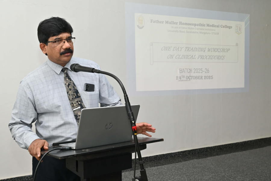 A one day training session on clinical procedures was held on 24.10.2025 for the Interns batch of 2025-26 at the Father Muller Competence learning centre, Deralakatte. The session was conducted to enhance the skills of the new batch of interns in various clinical procedures.