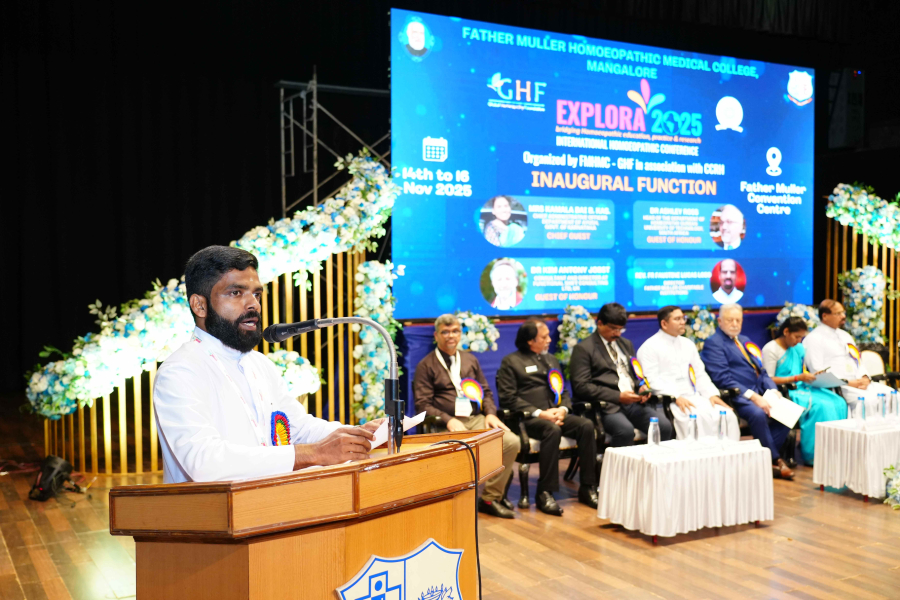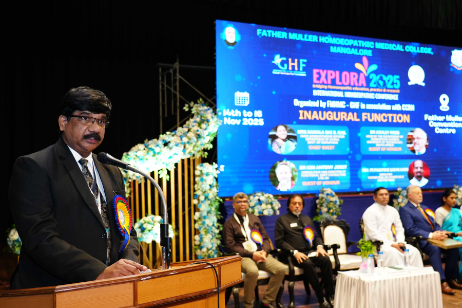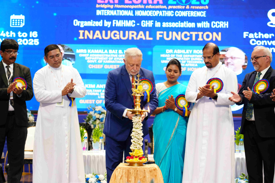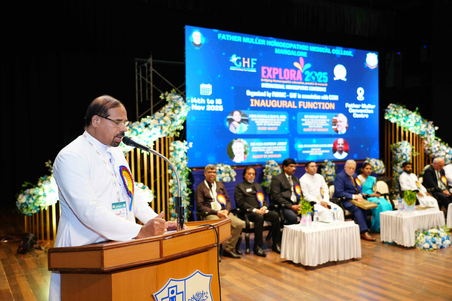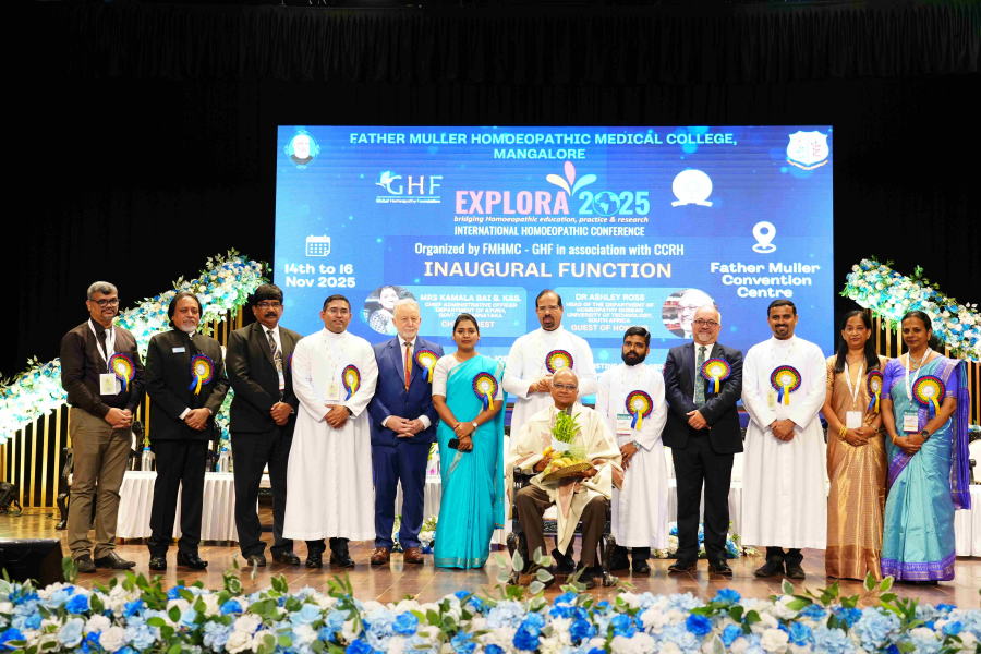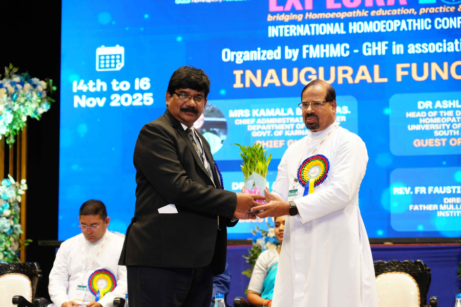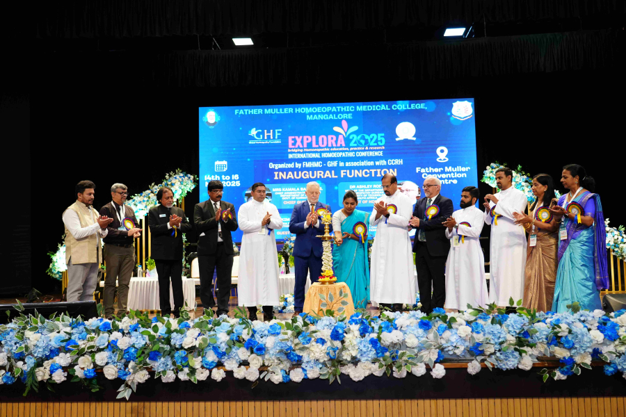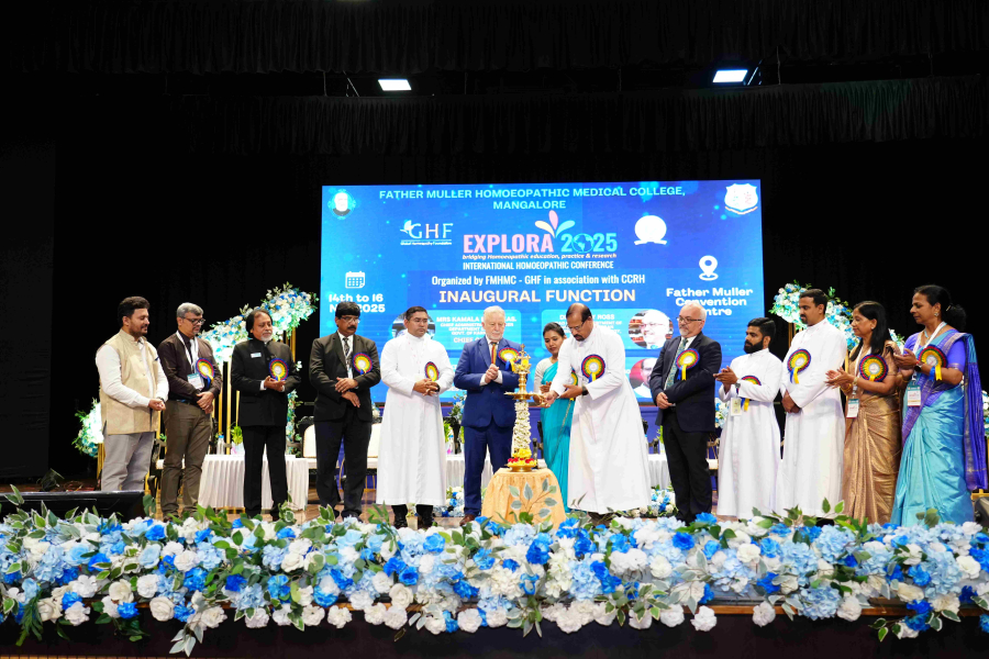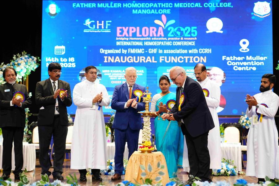 The Inaugural programme of the EXPLORA 2025 - bridging Homoeopathic education, practice & research, International Homoeopathy Conference of Father Muller Homoeopathic Medical College was held on 14th November 2025 at 11.30 a.m in the Father Muller Convention Centre, Kankanady.