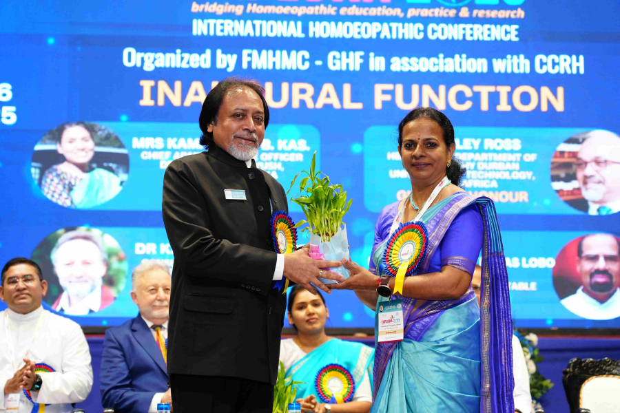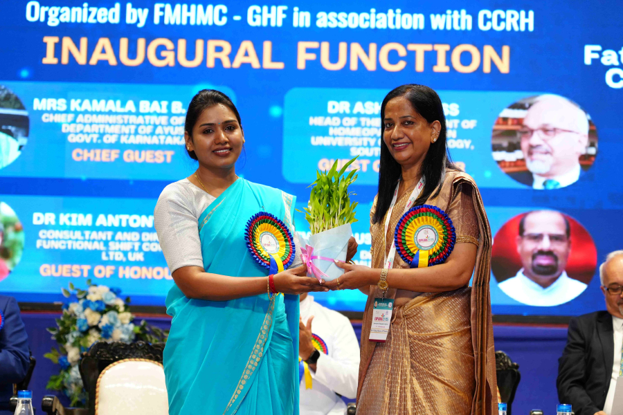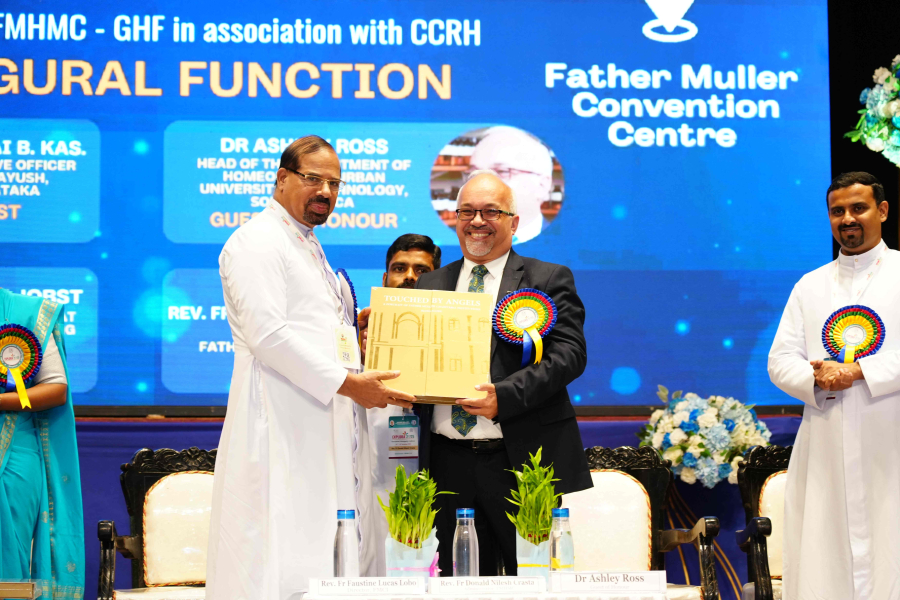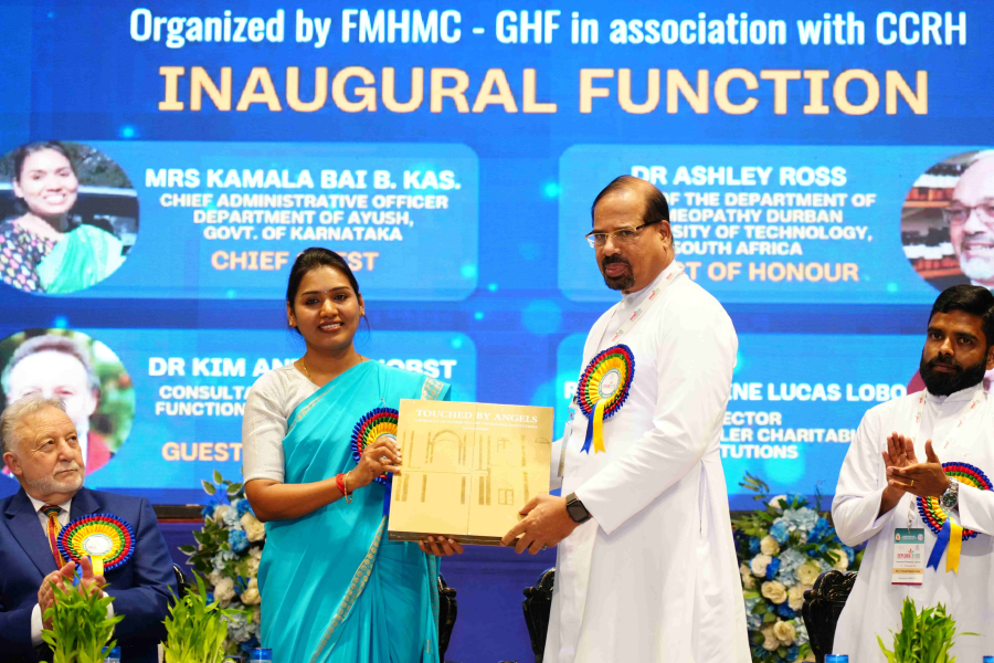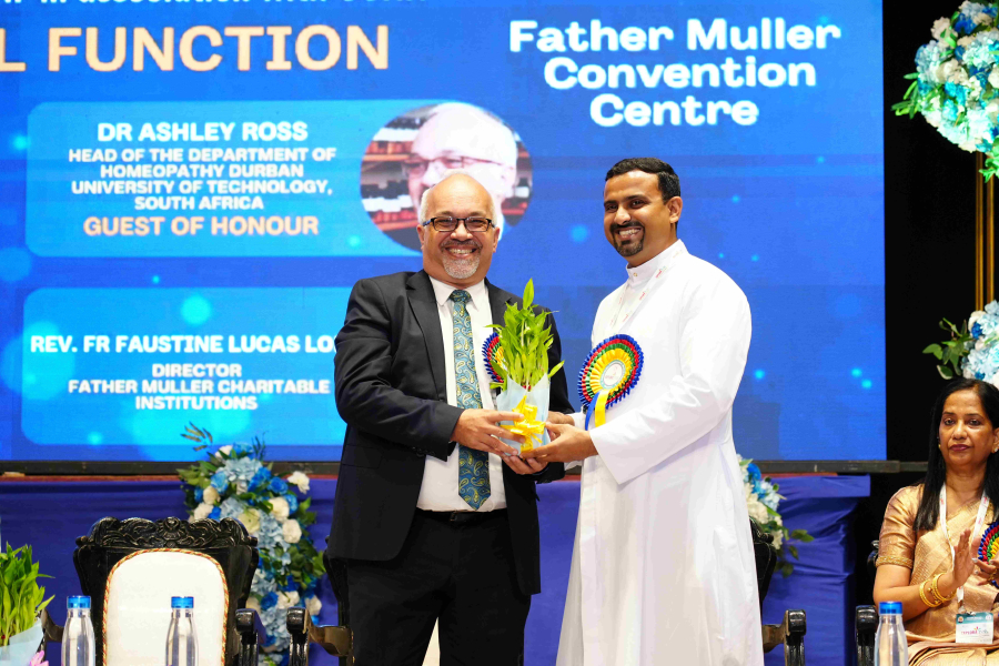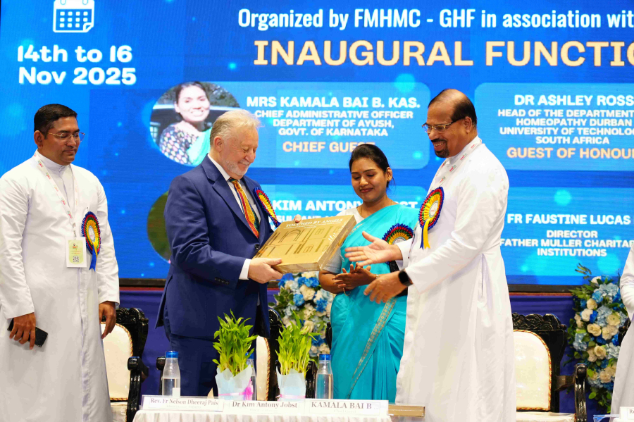 Mrs Kamala Bai B, KAS, Chief Administrative Officer, Department of AYUSH, Government of Karnataka served as the Chief Guest. Dr Ashley Ross, Head of the Department of Homoeopathy, Durban University of Technology, South Africa and Dr Kim Antony Jobst, Consultant and Director Functional Shift Consulting Ltd UK were the guests of honour. Rev Fr Faustine Lucas Lobo, Director of Father Muller Charitable Institutions presided over the inaugural programme.