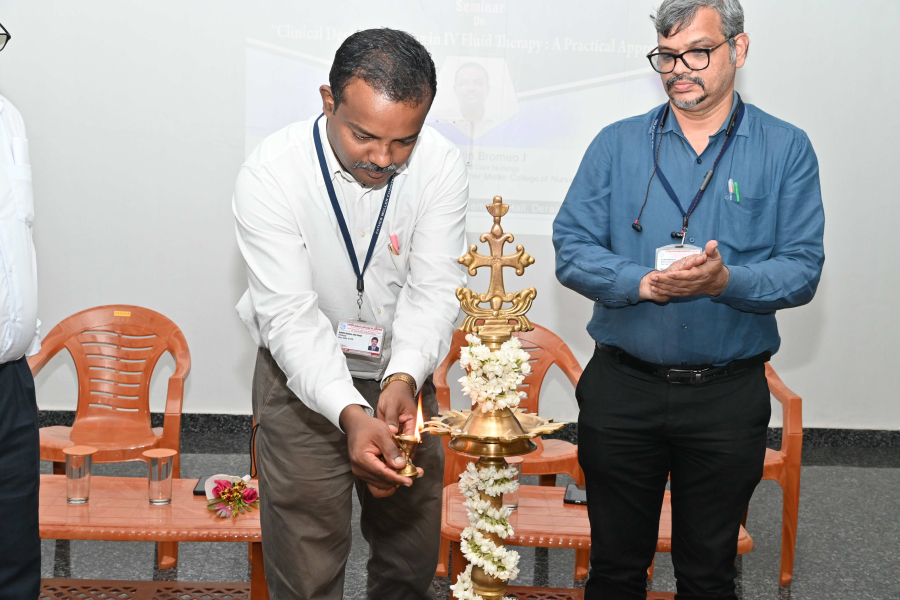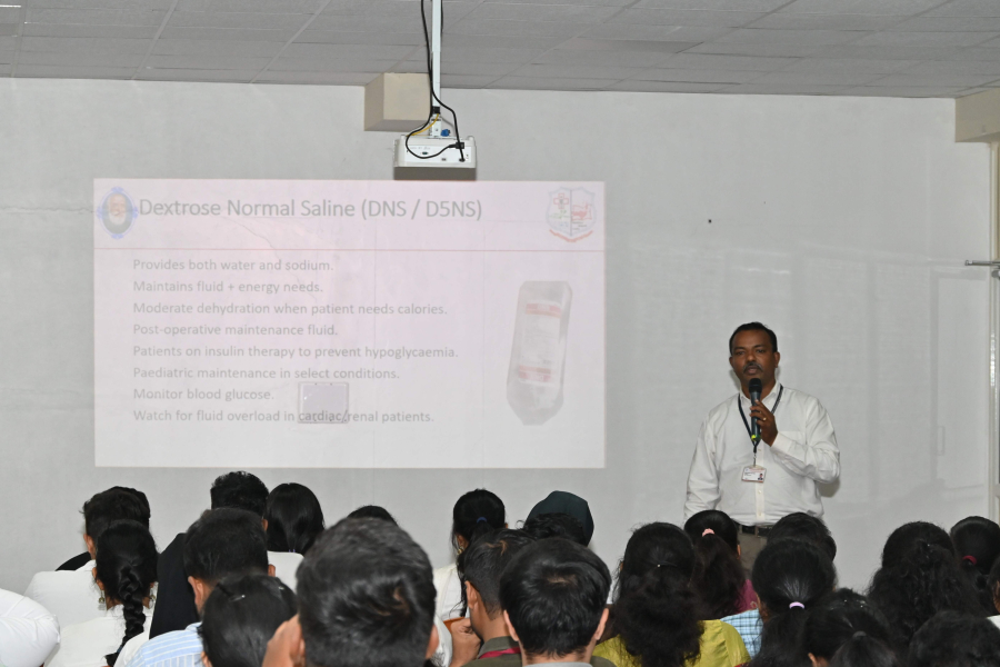 The scientific session was delivered by Mr. Ashwin Bromeo J, Professor of Medical-Surgical Nursing (Critical Care Nursing), who shared valuable practical insights into intravenous fluid therapy with an emphasis on real-time clinical decision-making and hands-on clinical application.