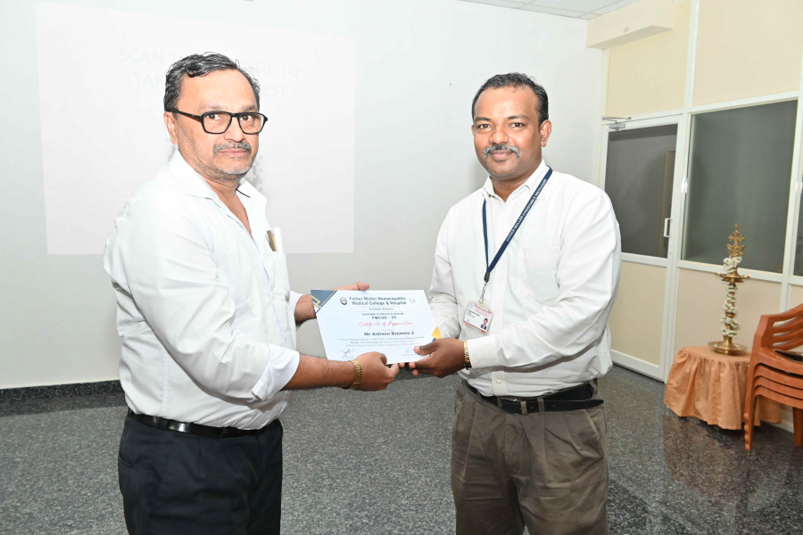 The gathering was formally welcomed by Dr. M. K. Kamath, Head of the Department of Practice of Medicine. The resource person was introduced by Dr. G. Rajachandra, PG Coordinator, and Dr. Girish Navada, MS, presented the memento to the resource person. The vote of thanks was proposed by Dr. Sushmitha, after which the inaugural session concluded with the Institutional Anthem.