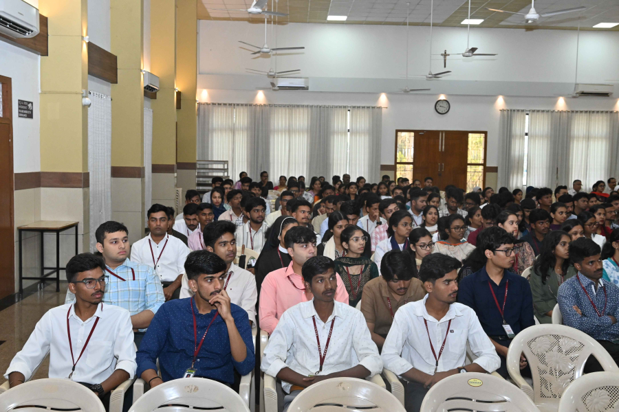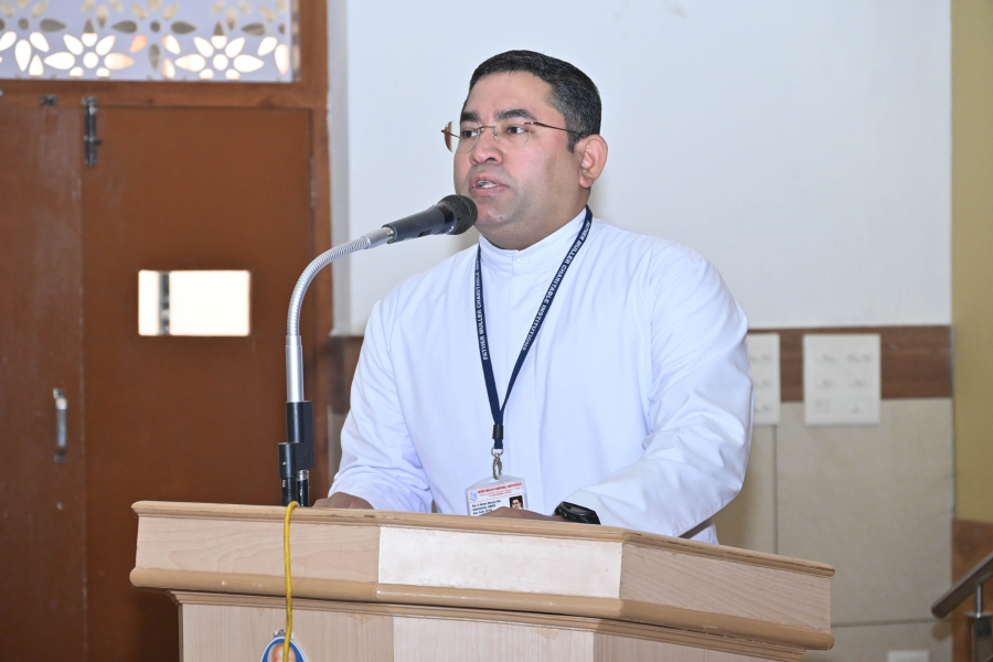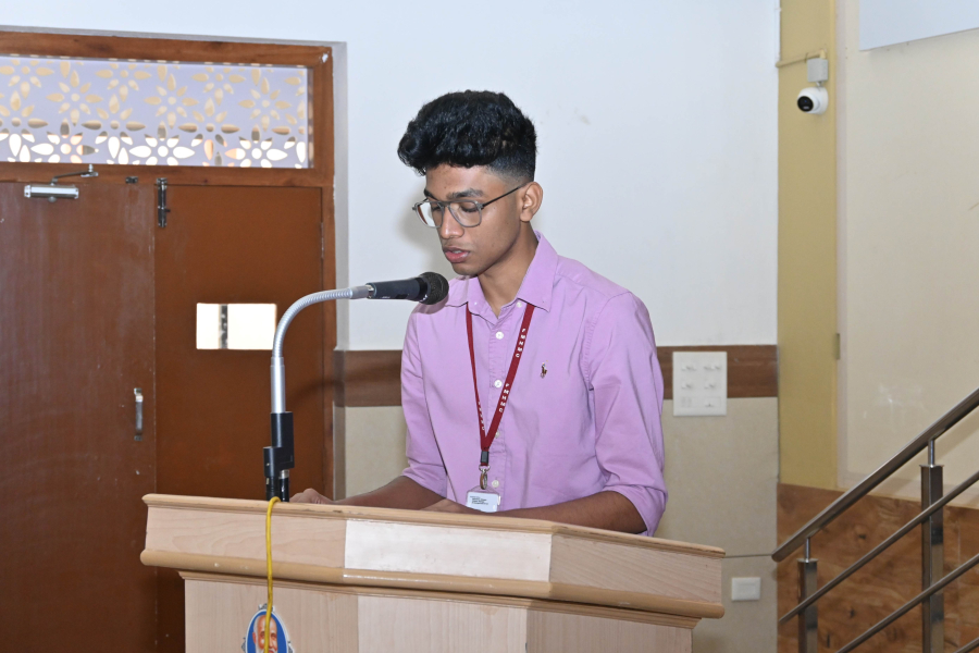 Dr E. S. J. Prabhu Kiran, Principal extended a warm welcome to the gathering. In his address he emphasized the importance of discipline and responsibility among students as they stepped into the New Year. He urged them to faithfully adhere to the guidelines and regulations of the institution, noting that such commitment fosters a conducive academic environment while contributing to personal growth and character building. He also congratulated the students, acknowledging the achievements and talents of every batch.