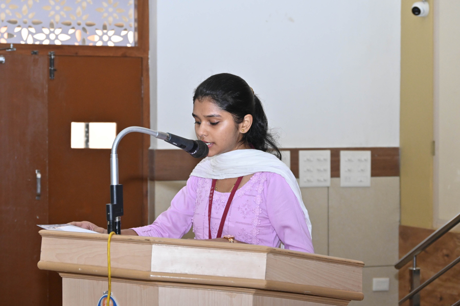 To conclude the spiritual observances, Ms Litty Mathew and team led a meaningful Thanksgiving prayer song, filling the auditorium with a spirit of gratitude and hope. The vote of thanks was gracefully proposed by the M.C Ms Chetana P. L.The prayer service concluded at 9.50 a.m. with the rendition of the Institution Anthem, bringing the programme to a dignified and meaningful close.
