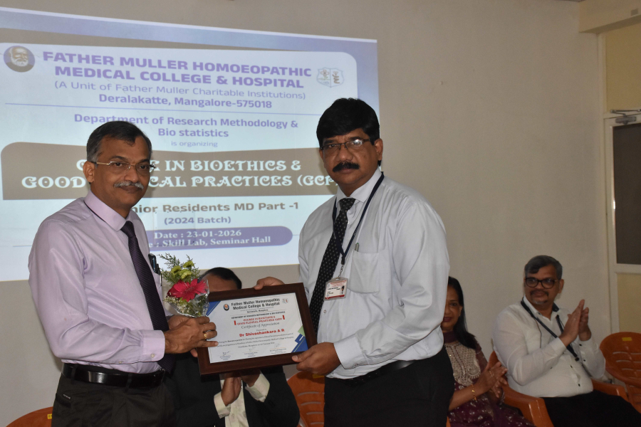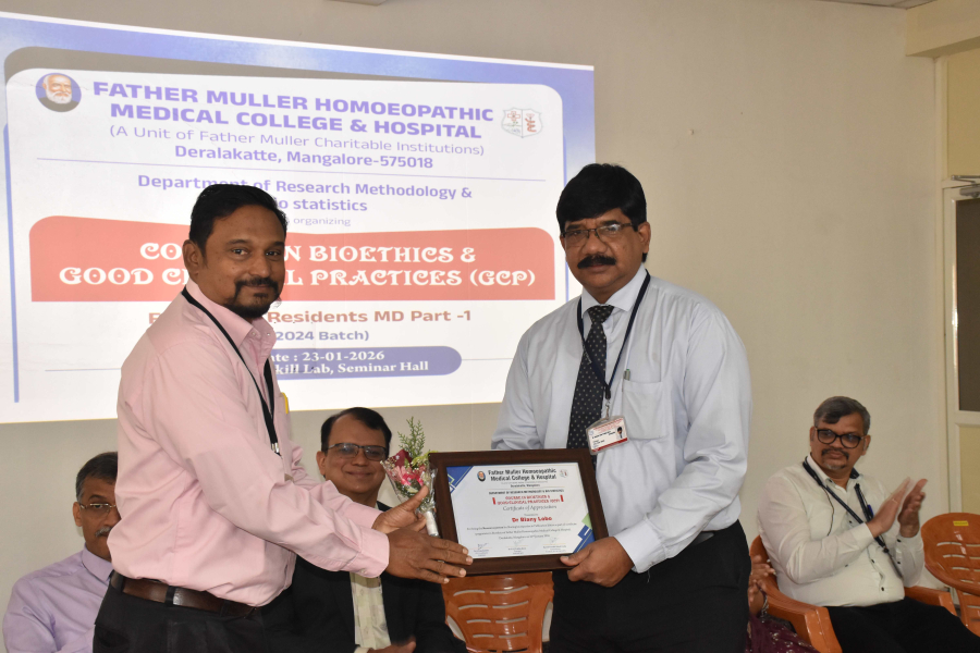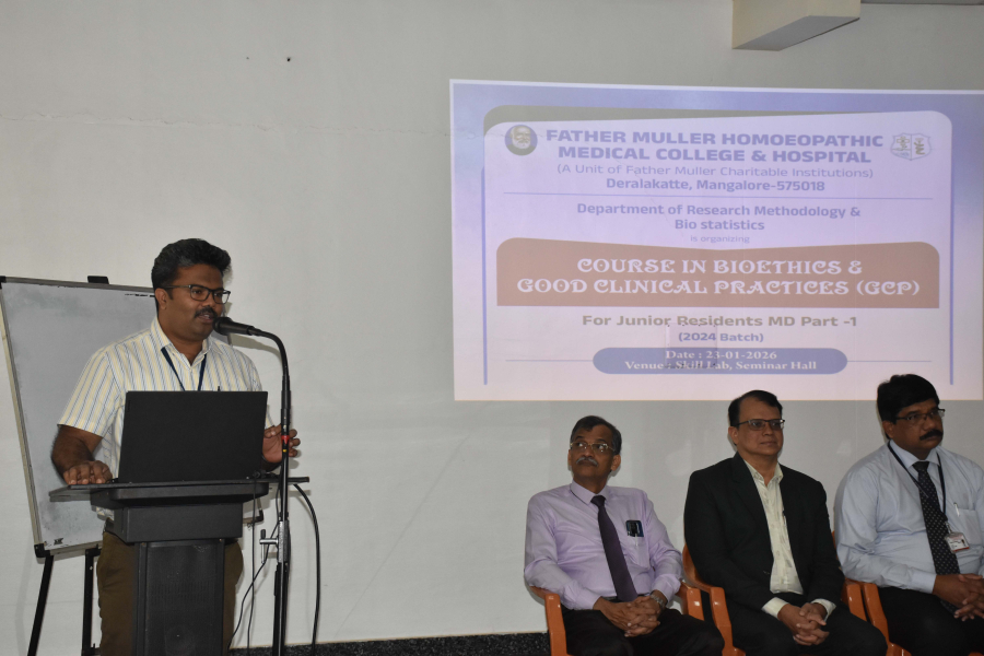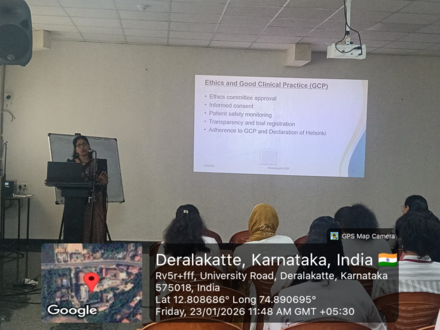 The Department of Research Methodology & Biostatistics organized a full-day workshop on Bioethics and Good Clinical Practice (GCP) for Junior Residents (CBDC Batch–2024) on 23.01.2026, as a part of the mandatory coursework requirement for appearing in the Part I MD Examination under the National Commission for Homoeopathy Regulations, 2024.