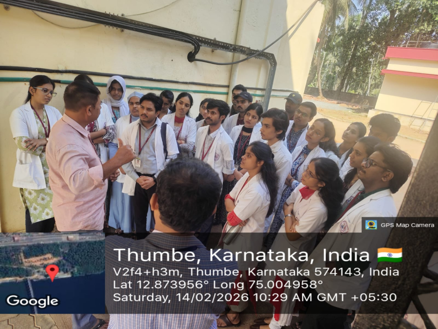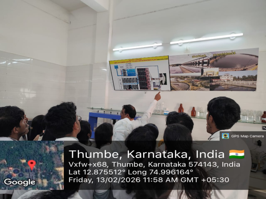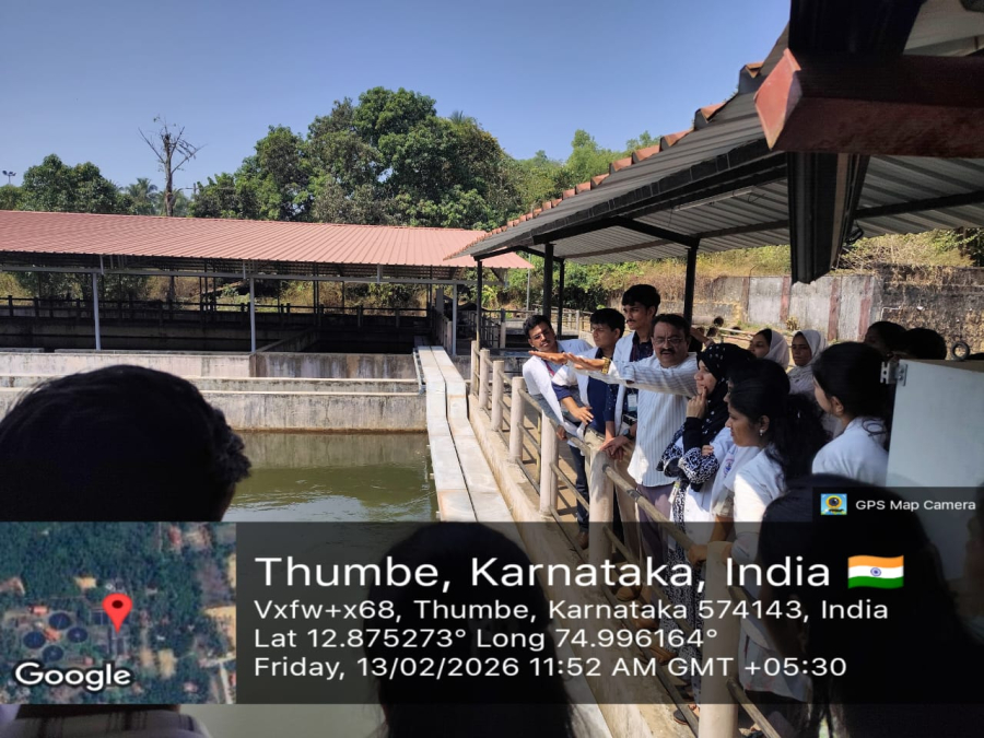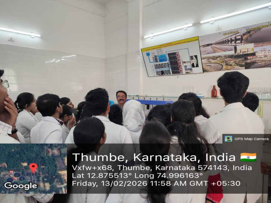 The visit was both informative and educational, enhancing the students’ understanding of water treatment processes and public health significance. Dr. Sajan K. R., HOD & Professor, Dr. Kashyap Suvarna, Associate Professor, and Dr. Shreya N. Padiyar accompanied the students during the visit.