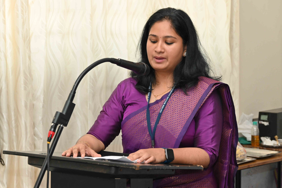 Chief Guest: Mrs. Bindhiya Nayak, District Officer, Backward Class Welfare Department, Dakshina Kannada. Mrs. Nayak shared insightful perspectives on social welfare, the legal rights of women, and the necessity of administrative representation for women in the public sector. Mrs. Bindhiya Nayak encouraged all ladies to look beyond clinical practice and duties and engage in community leadership to uplift the marginalized sections of society and also to give importance to self and means of self reliance like.
