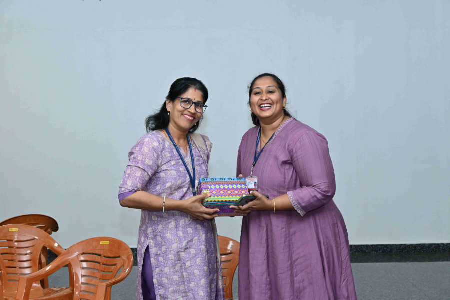 A highlight of the celebration was the formal felicitation of Mrs. Thanuja, the sole female Security Personnel on the Father Muller campus.The committee chose to honor Mrs. Thanuja for her dedicated service, resilience, and for breaking gender stereotypes within the campus workforce. She was presented with a memento, shawl and fruit basket by the Director and the Chief Guest as a mark of respect for her contribution to the safety and discipline of the institution.