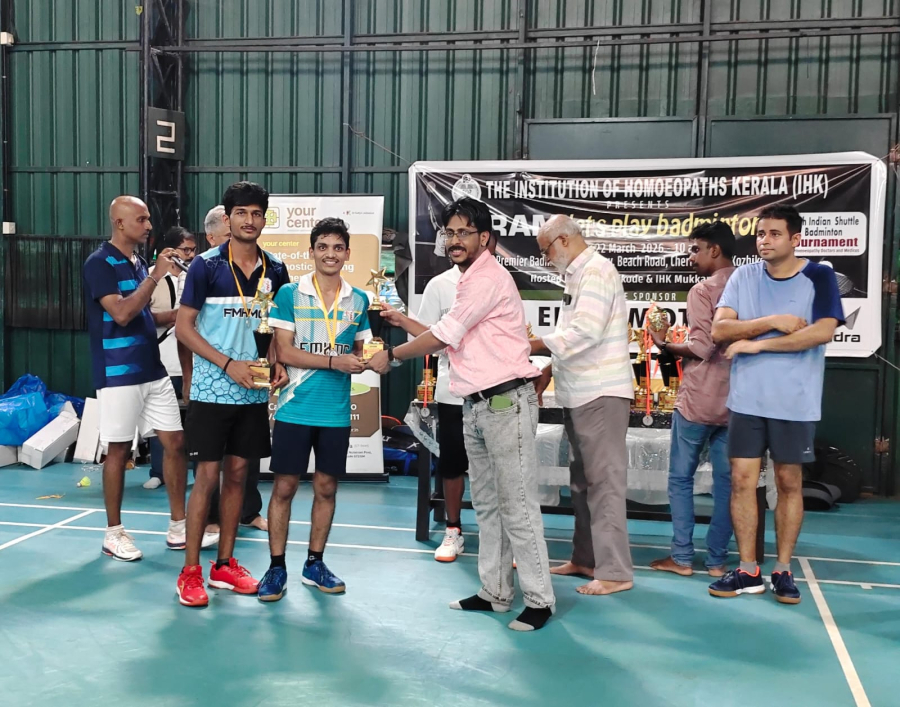 I am happy to inform that the following students are awarded with the winners trophy in mixed doubles and runners in Men\'s Doubles (UG category) in South India Shuttle Badminton Tournament 2026 organized by IHK, Kozhikode on 22.03.2026.