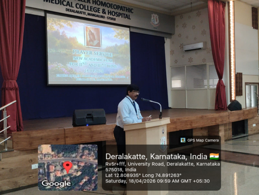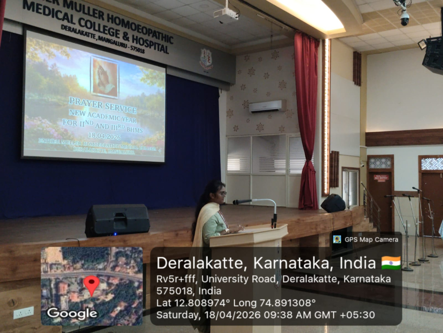 A prayer service was arranged by the Spiritual committee for the commencement of the new academic year 2026, for the undergraduate students of 2nd and 3rd BHMS students on 18.04.2026 at 9:30 am at FMHMC college auditorium. All students and faculty members attended the same. The prayer service began with a warm welcome by the MC, Miss Samyuktha. A melodious prayer song was sung by Mr Alwin Fernandes & team.