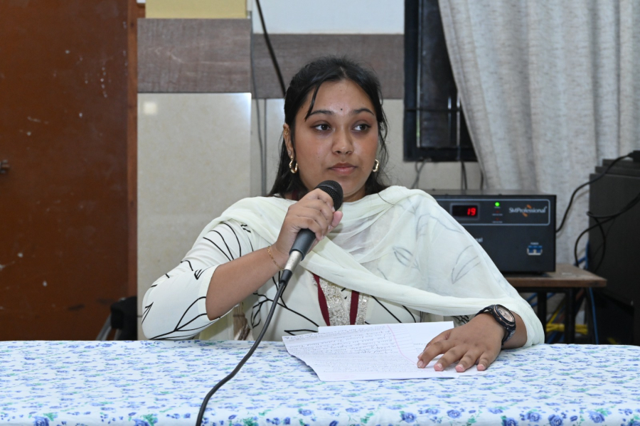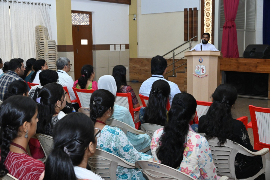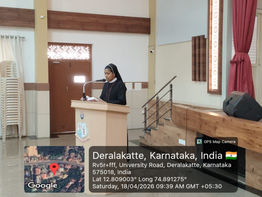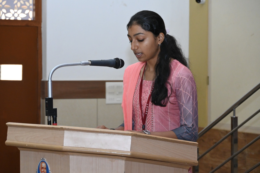 There was a brief introductory prayer by Ms Sheela Joy and Scripture reading by Sr Margaret Ashmi. Rev. Fr Donald Nilesh Crasta, Administrator, FMHMCH, then reflected on the word of God and urged the students to make use of their talents in the best possible way. This was followed by the prayer of the faithful by the Spiritual Committee members, Dr Jenita Fernandes (Co-coordinator), Dr Anu Luke and students; Pavana, Khushi and Zulu. The concluding prayer was by Dr Anita Lobo, HOD, Repertory and Spiritual Committee Co-ordinator. This was followed by a thanksgiving prayer song by the prayer song team.