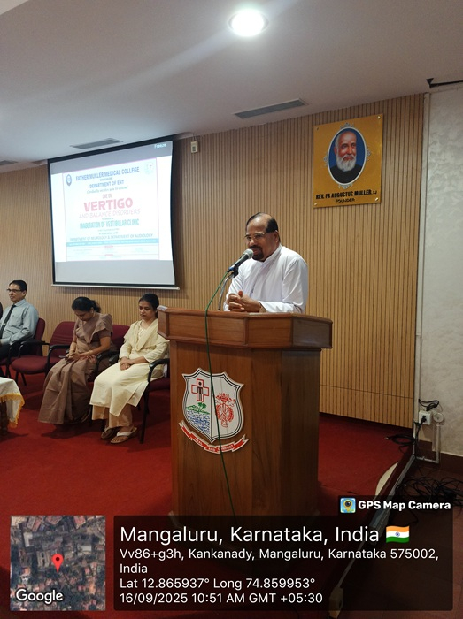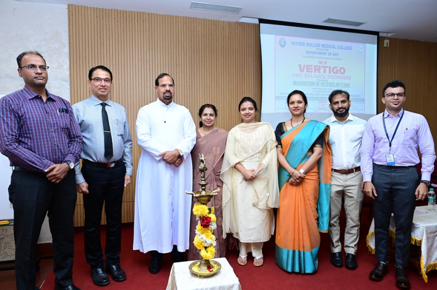 The Department of ENT, Father Muller Medical College successfully organized a half day CME on vertigo and balance disorders on 16th September 2025 for postgraduate students and consultants of ENT, Neurology and Audiology departments. The dedicated team consisted of Dr.Vinay V Rao,(Organizing chairman) and Dr. Adhyasha Surendran(organizing secretary) from department of ENT. Dr.Vijayalakshmi Subramaniam – Professor, Department of ENT, Yenepoya Medical College, Dr. Sheetal Rai, Professor, Department of ENT, Yenepoya Medical College, Dr. Deekshith R.M., Assistant Professor, Department of ENT, Yenepoya Medical College were the guest faculty and speakers.