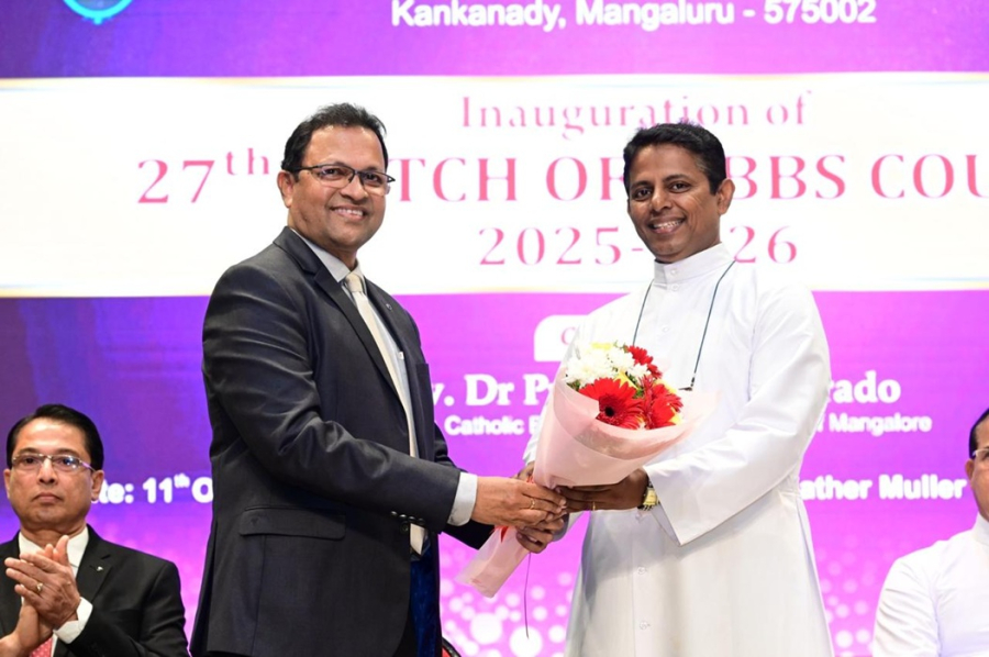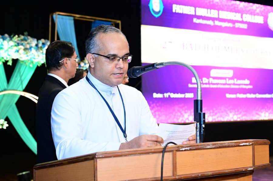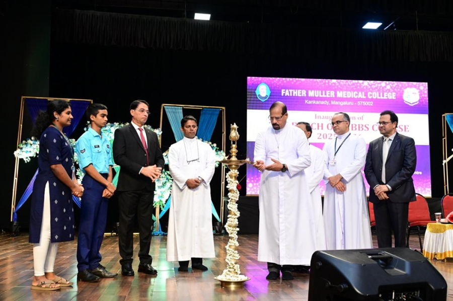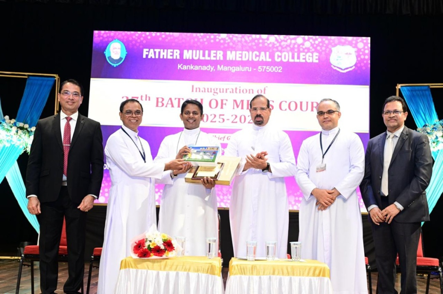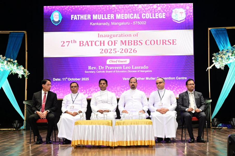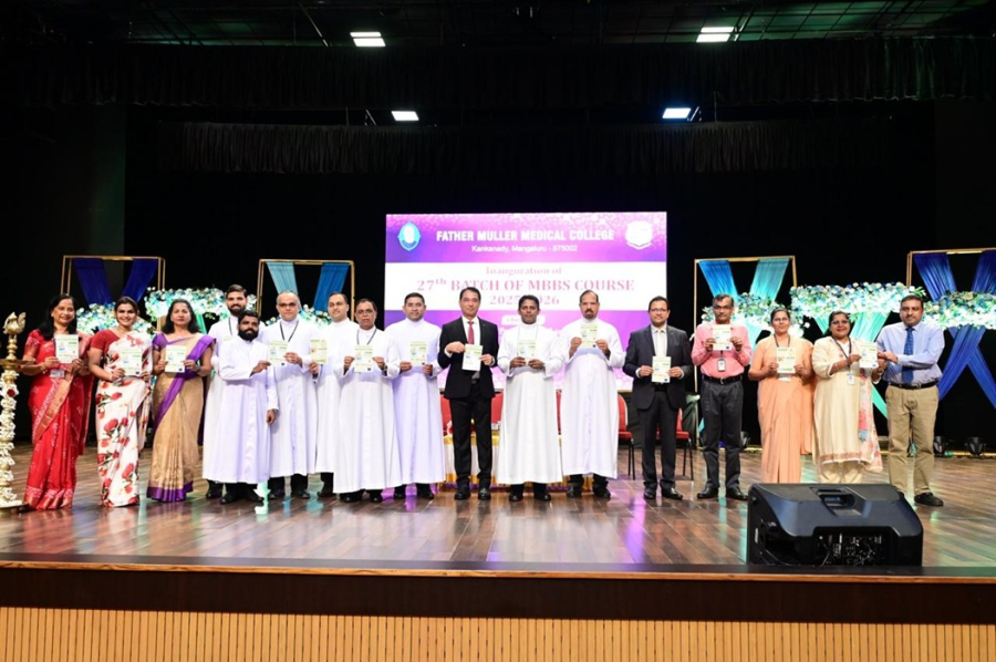 The commencement of the academic year for the 27TH batch of MBBS students (2025-26) at Father Muller Medical College (FMMC) was held on 11 October 2025 in a solemn and inspiring ceremony. The event was presided over by Rev. Fr Faustine Lucas Lobo, Director, Father Muller Charitable Institutions (FMCI), and graced by Rev. Dr Leo Lasrado as the Chief Guest.