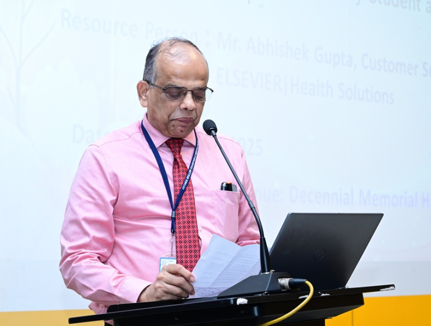 The Program began with an introduction about the  training session by Dr. Janet Dotty Lobo, Chief Librarian. Dr John J.S. Martis,  Professor of General Surgery, Chairperson of the Central Library Committee, welcomed  the gathering and introduced the Resource Person Mr. Abhishek Gupta, Customer  Success Manager, ELSEVIER /Health Solutions.
