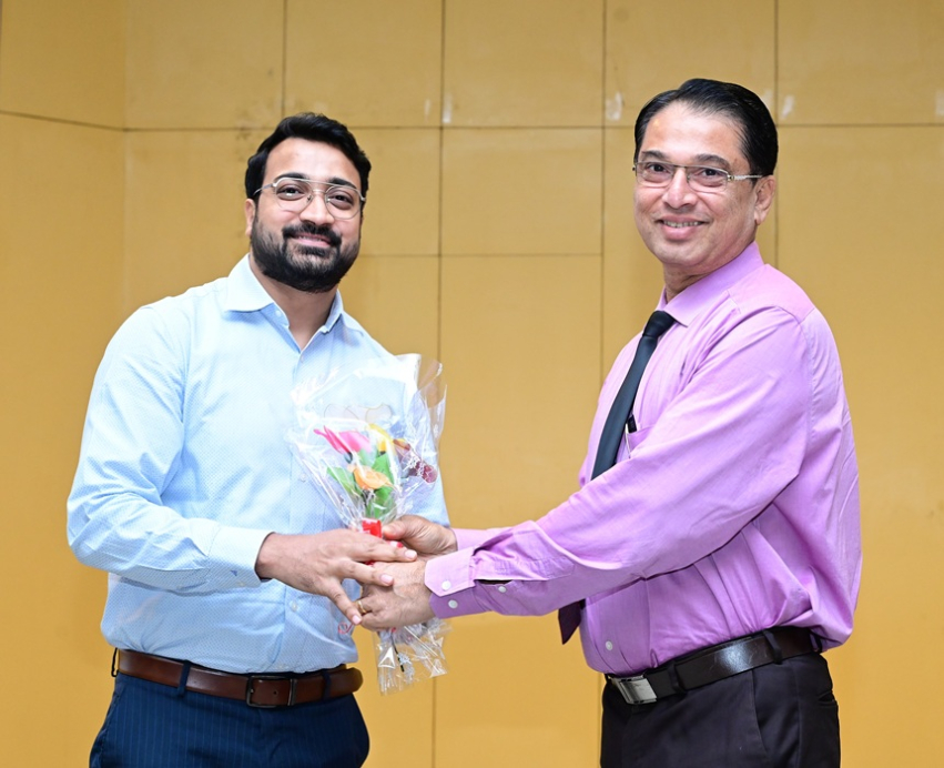 Dr Antony Sylvan D Souza, Dean- FMMC offered a bouquet to Mr.  Abhishek Gupta.