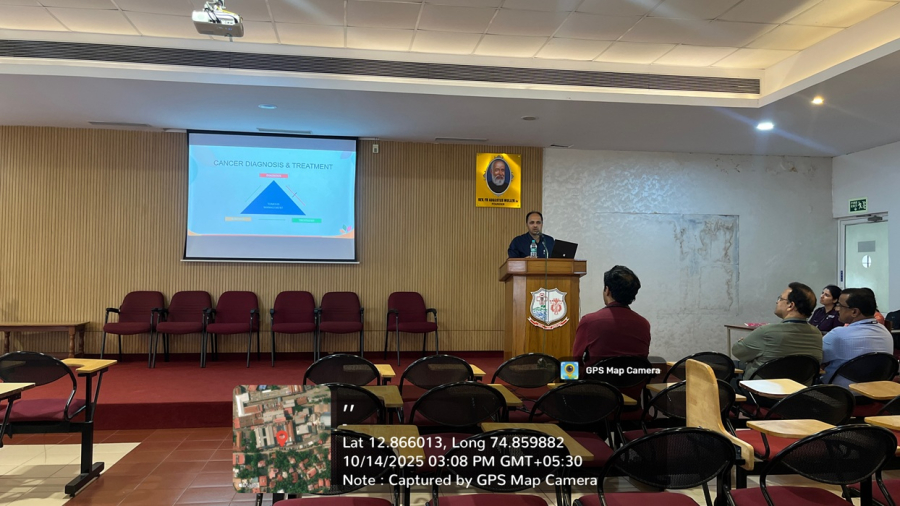 Guest lecture  on ‘How to treat cancer: The Past, The  Present, The Future” was held on 14.10.2025 in Conference hall, Father  Muller Medical College, Mangalore. Dr.Hemanth Kumar Oncologist, Mangalore  Institute of Oncology, Mangalore was the speaker. Dr.Srilakshmi M Prabhu,  Associate Professor, Department of General Medicine, FMMC  was the moderator.  An interactive session was followed by  questions and answers and was followed by tea.   Around 60 members were present for this educational programme.