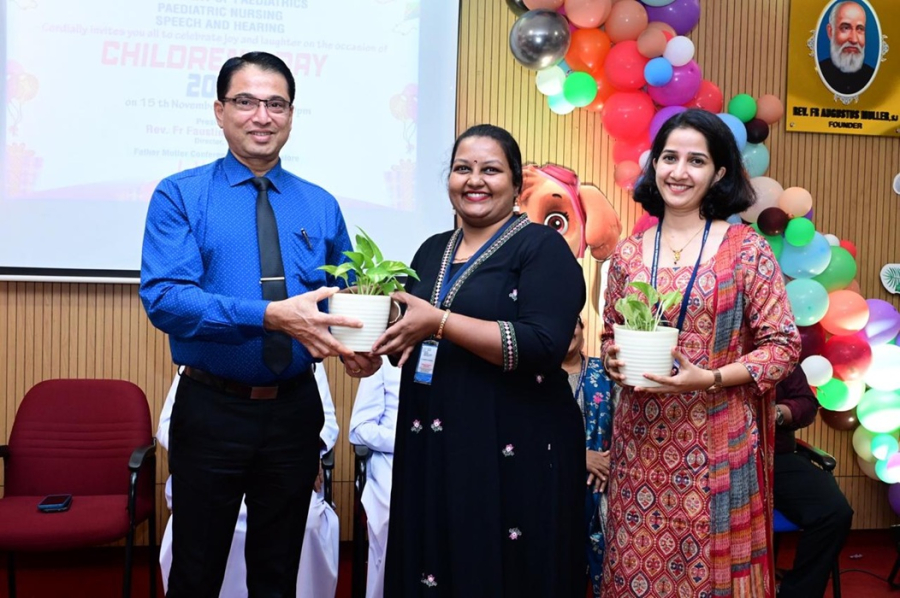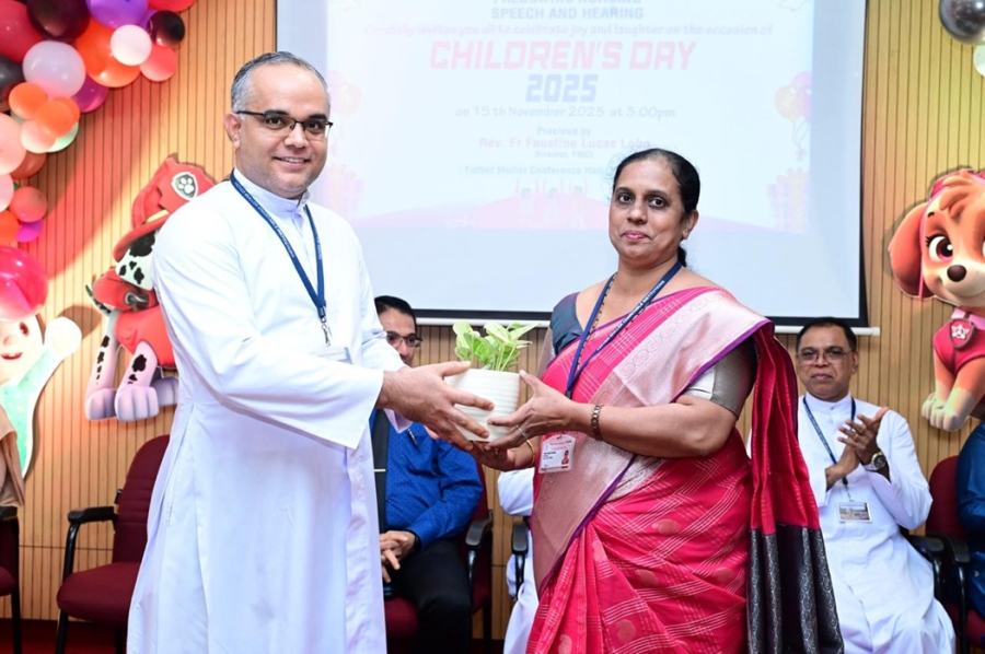 The Department of Paediatrics, Father Muller Medical College Hospital (FMMCH), together with the Department of Paediatric Nursing, Father Muller College of Nursing (FMCON) and Department of Speech and Hearing celebrated Children’s Day with great enthusiasm in the Conference Hall on the afternoon of 15th November 2025. The event was a heart-warming occasion, filled with joy, laughter, and togetherness, bringing bright smiles to the faces of our young participants. Anchoring the event with grace and enthusiasm were the emcees, Dr. Himalini and Dr. Satwik.
