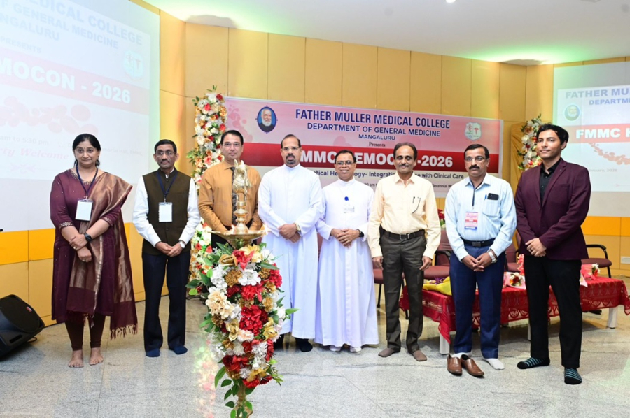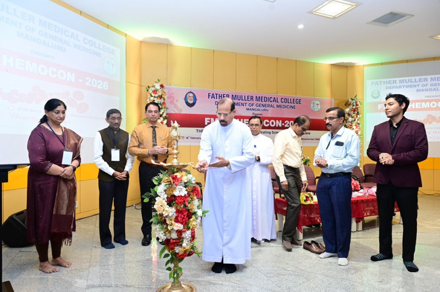The Department of General Medicine, Father Muller Medical College, Mangaluru, conducted a one-day CME, ‘FMMC HEMOCON -2026’ on 14th February, 2026. The theme of the conference was ‘Practical Hematology-Integrating Science with Clinical Care’, to stay updated with the continually changing medical guidelines. Around 275 delegates from in and around Karnataka attended the CME.