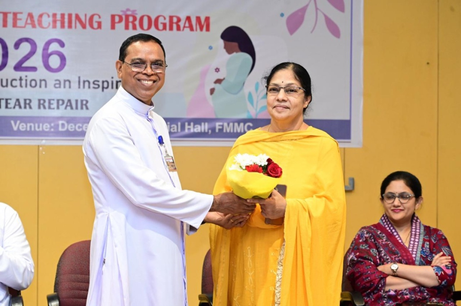 The inaugural ceremony commenced with invocation and welcome address by Dr. Mahesha Navada, (prof and hod dept of obg) followed by the ceremonial lighting of the lamp. The Chief Guest,Dr. Rathnamala M. Desai, Professor Emeritus, SDM College of Medical Sciences and Hospital, Dharwad, delivered an inspiring address emphasizing clinical excellence and continuous learning . The Presidential Address was delivered by Rev. Fr. Faustine Lucas Lobo, Director, FMCI .