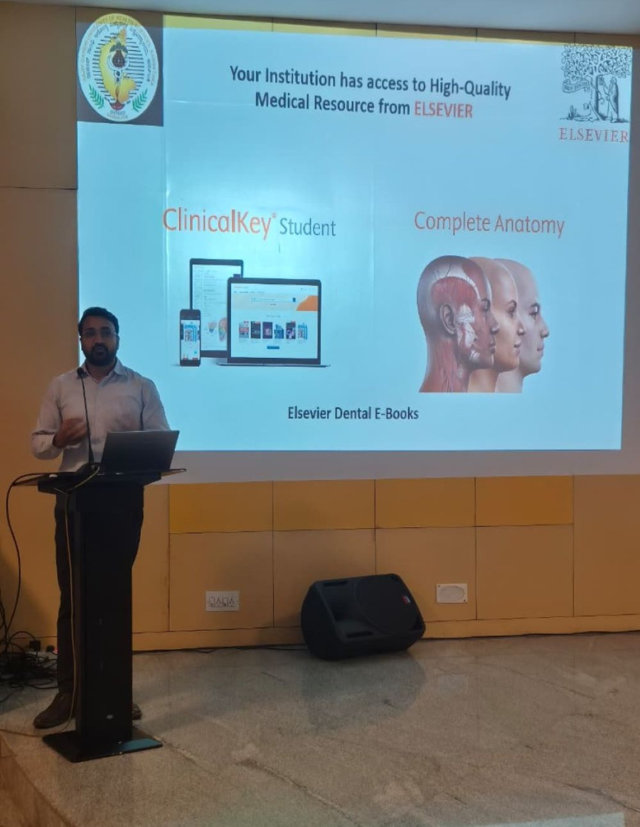 Dr Antony Sylvan D Souza, Dean- FMMC offered a bouquet to Mr. Abhishek Gupta. Mr. Abhishek Gupta gave a Powerpoint Presentation and a live demo on ClinicalKey Student and Complete Anatomy. He explained how to download and install the Complete Anatomy App using a student activation code. Complete Anatomy is a comprehensive Learning Tool contains that interactive 3D models of the human body. Clinical Key Student contains E-books, (Basic Science & Clinical Medicine) and also includes Clinical and Practical Skills Videos, images, bookshelf etc.