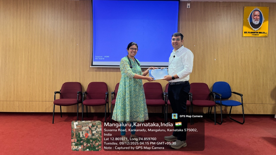 Guest lecture on ‘Oxygenation and Ventilation - An approach to monitoring and management in the ICU” was held on 09.12.2025 in Conference hall, Father Muller Medical College, Mangalore. Dr.Mohammad Nawaz, Consultant Intensivist and Anesthetist from First Neuro Hospital Mangalore was the speaker. Dr.Vijay Sundarsingh, Intensivist FMMCH, FMMC was the moderator. The interactive lecture was appreciated by all. High tea was provided. Around 75 members were present for this educational programme.