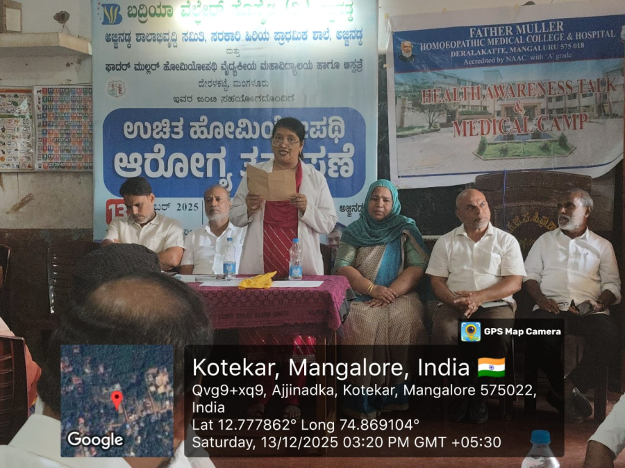 A General Medical Camp was organized by Father Muller Homoeopathic Medical College & Hospital, Deralakatte, in collaboration with Badriya Welfare Society (R), Ajjinadka, at the Government Higher Primary School, Ajjinadka, on 13 December 2025.