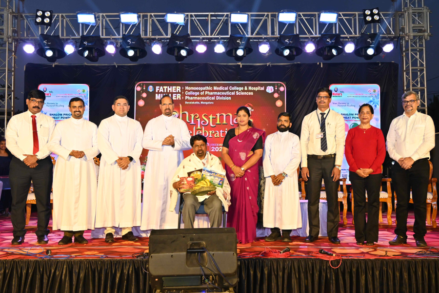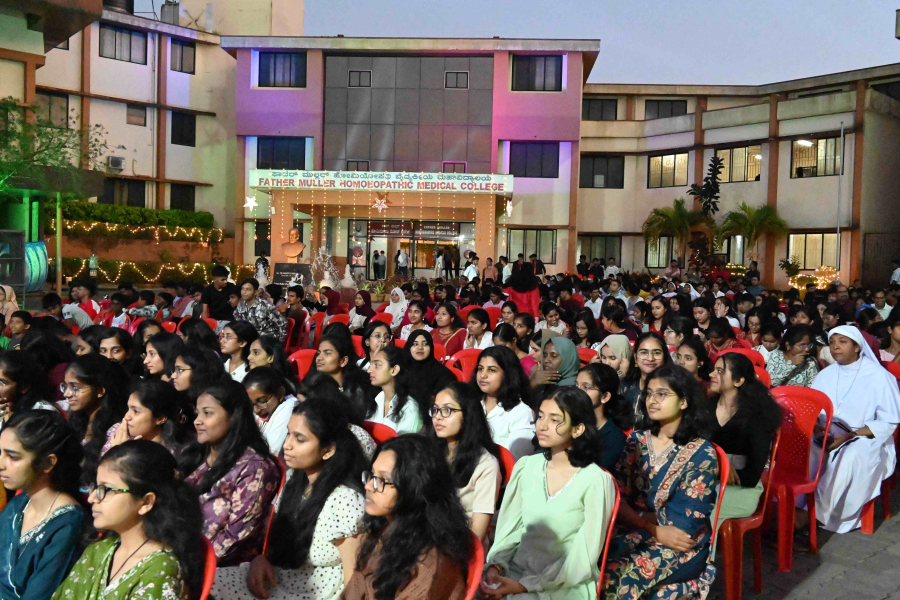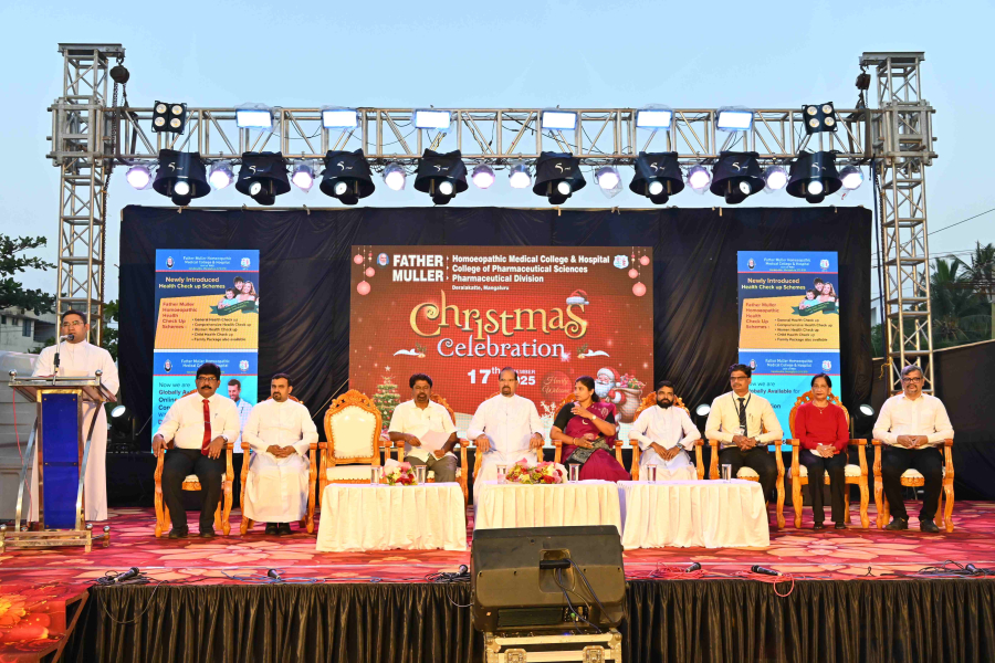 A joyful Christmas celebration was organized on the evening of December 17, 2025 at the premises of the Homoeopathic College conjointly hosted by Father Muller Homoeopathic Medical College and Hospital(FMHMCH), Father Muller College of Pharmaceutical Sciences (FMCOPS), and Father Muller Homoeopathic Pharmaceutical Division(FMHPD)Deralakatte.