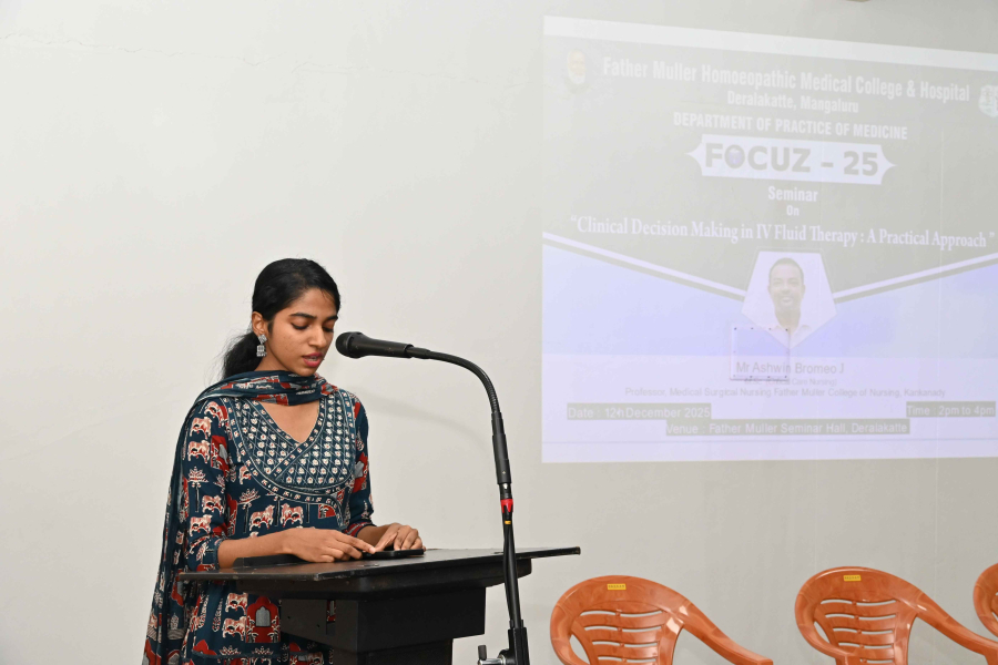 The Department of Practice of Medicine organized a Continuing Medical Education (CME) FOCUZ 2025 titled “Clinical Decision-Making in IV Fluid Therapy: A Practical Approach.” on 12th December 2025 from 2.00 p.m. to 4.00 p.m. at the Skill Lab Seminar Hall.