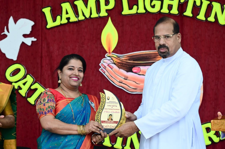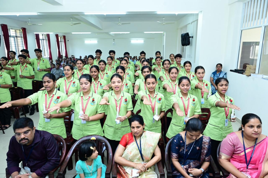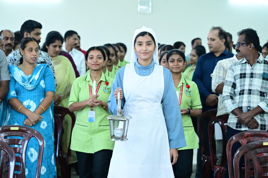 The Lamp Lighting and Oath Taking Ceremony of the 4th Batch (2025–2029) BSc Nursing students of Father Muller Nursing College Thumbay, was solemnly held on 20 December 2025, marking an important milestone in their professional journey. The programme began with a Thanksgiving Holy Mass celebrated by Rev. Fr. Sylvester Vincent Lobo and concelebrated by Rev. Fr. Vinod Lobo.