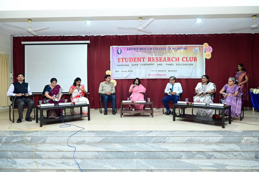The Student Research Club, Father Muller College of Nursing, Mangaluru, organized its first Panel Discussion titled “From Proposal to Publication: Embedding Ethics and Discipline in Every Research Step” on 13 January 2026 at Rajath Bhavan, FMCON.
