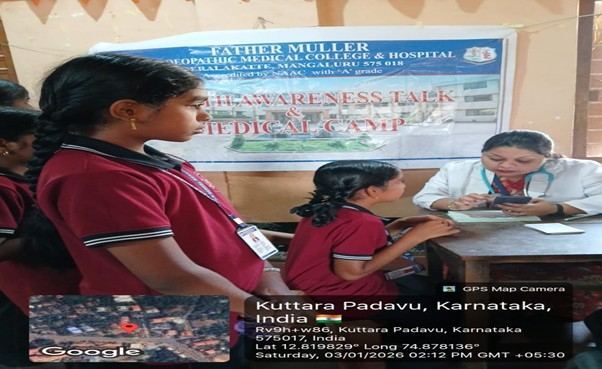 A Medical Camp for screening of skin diseases was organised by the Unit of Dermatology, Father Muller Homoeopathic Medical College and Hospital, on 03.01.2026 and 10.01.2026 from 2:00 PM to 4:00 PM for the students of Dakshina Kannada Zilla Panchayat Higher Primary School, Munnooru–Kuthar.