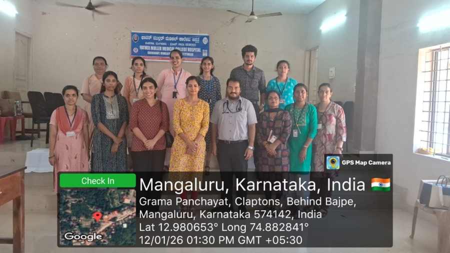 On 12th January 2026, a successful one-day General Health Check-up Camp was conducted at Bajpe Panchayath, Bajpe. This initiative, organized by Father Muller Medical College Hospital in collaboration with Bajpe Panchayath, Bajpe. Camp was aimed to promote health awareness and provide essential medical services to the municipal Sanitation workers and other employees of Panchayath. The health camp offered medical services to them including Dermatalogy, Dental, and General Medicine with ECG and pharmacy services. These services were aimed at facilitating early detection of health issues and promoting overall well-being among the members. The camp was co-ordinated by Ms. Caroline Smitha, Assistant Lecturer from the Department of Community Health Nursing at Father Muller College of Nursing (FMCON). She played a vital role in ensuring the smooth operation of the camp. Additionally, two 4th BSc Nursing students from Father Muller College of Nursing (FMCON) actively participated in the camp. They assisted with the registration process also handling Pharmacy section. The health camp attracted a total of 55 beneficiaries, who benefited from the various services provided.