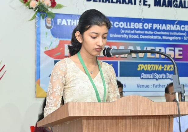 The gathering was formally welcomed by Rev. Fr. Donald Nilesh Crasta, following which Ms. Aysha Saleem Sheik, from 3rd Semester B.Pharm, delivered the Welcome Address, extending a cordial greeting to the dignitaries, faculty members and students.