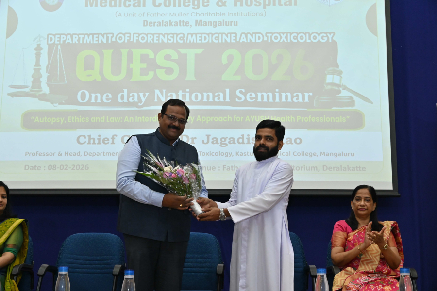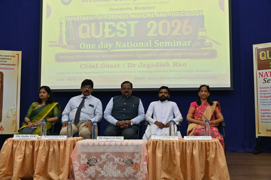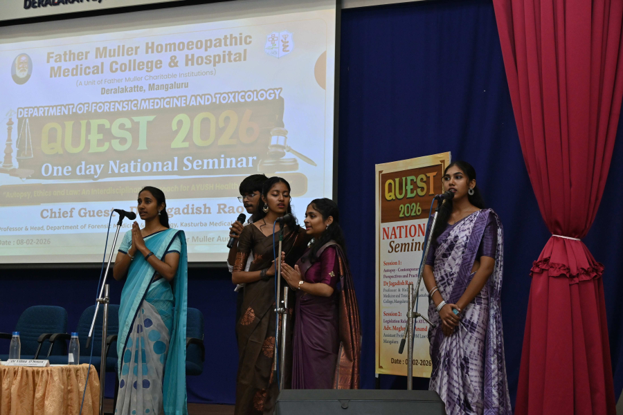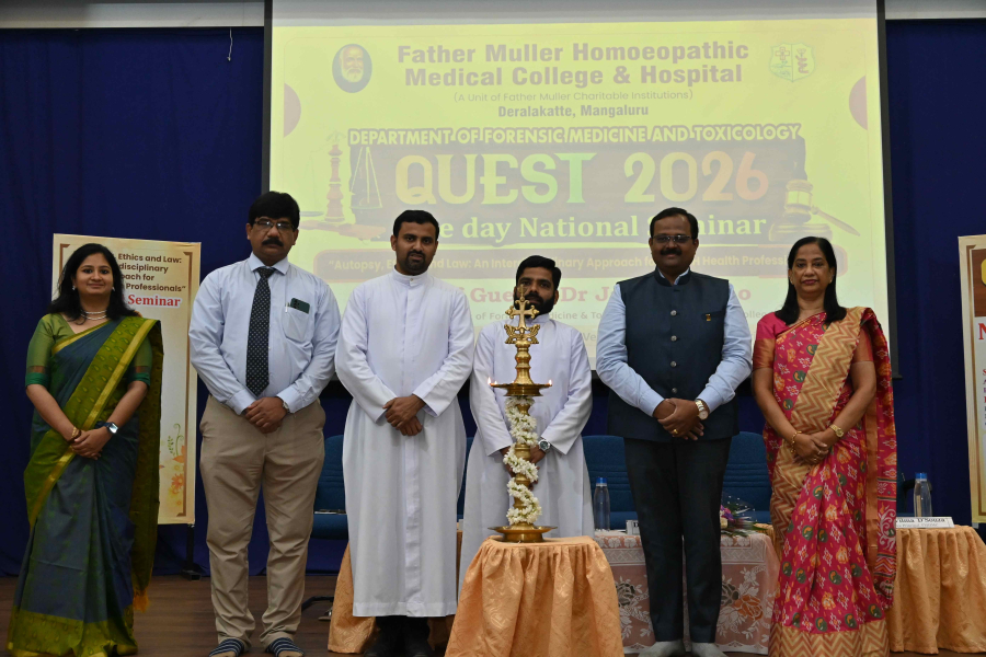 A One-Day National Seminar titled “QUEST 2026 – Autopsy, Ethics and Law: An Interdisciplinary Approach for AYUSH Health Professionals” was organized by the Department of Forensic Medicine and Toxicology, Father Muller Homoeopathic Medical College, Deralakatte, Mangaluru, on 8th February 2026 at the college auditorium.