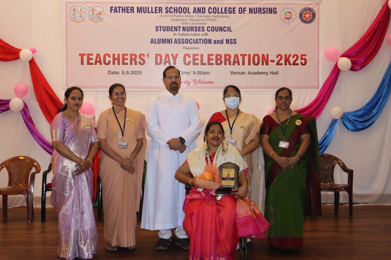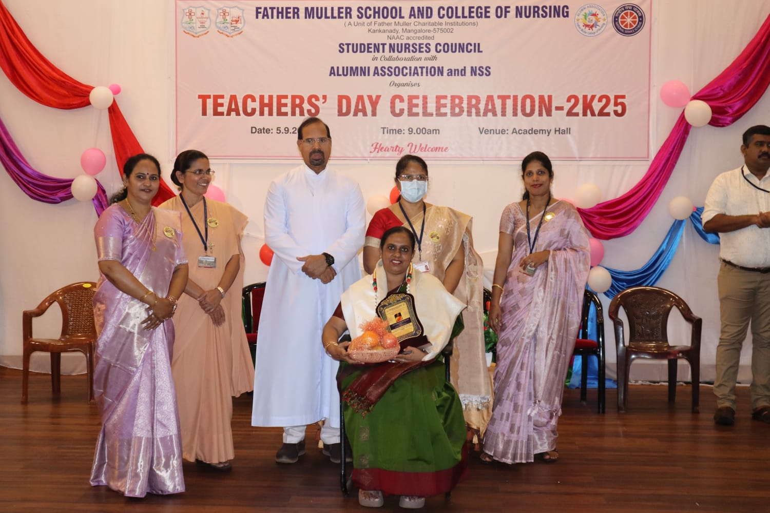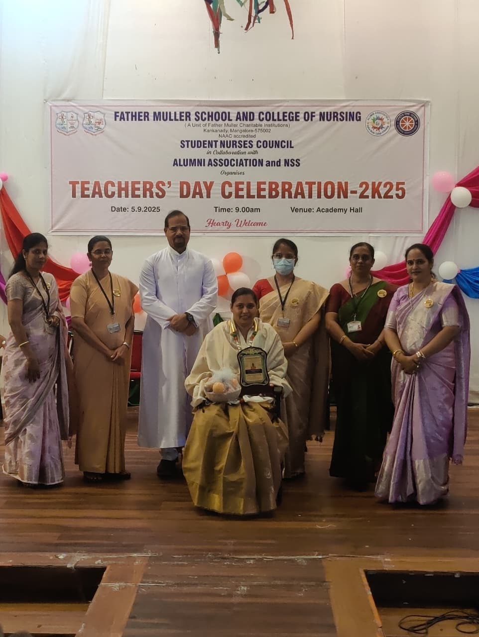 Alumni Association of Father Muller College of Nursing in collaboration with the Students Nurses Council organized. teacher’s day celebration on 5 September 2025 to honour and appreciate the invaluable contributions of the teaching fraternity. The formal inauguration of the program commenced at 9.30 am with a soulful prayer song rendered by the nursing students, setting a serene and reflective tone for the day.