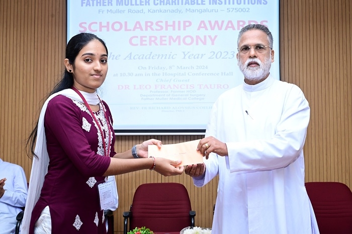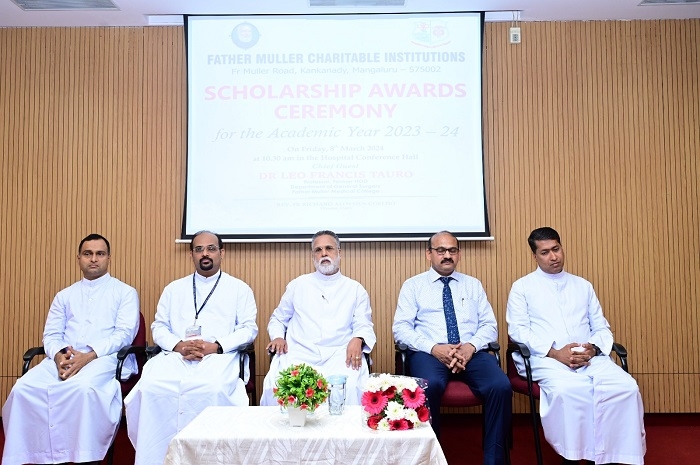 Father Muller Charitable Institutions (FMCI) recently held a prestigious ceremony to award scholarships for the academic year 2023-2024 to the most deserving students of its educational institutions. The event, which took place on Friday, 8th March 2024, at 10.30 am in the Hospital Conference Hall, was a celebration of academic excellence and a testament to FMCI's commitment to nurturing talented individuals from economically disadvantaged backgrounds.