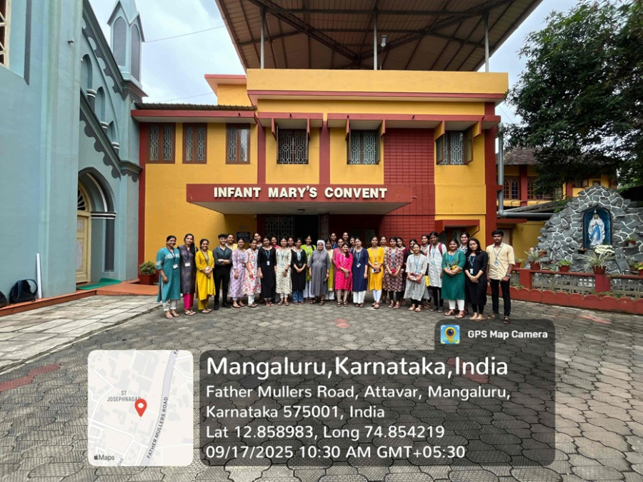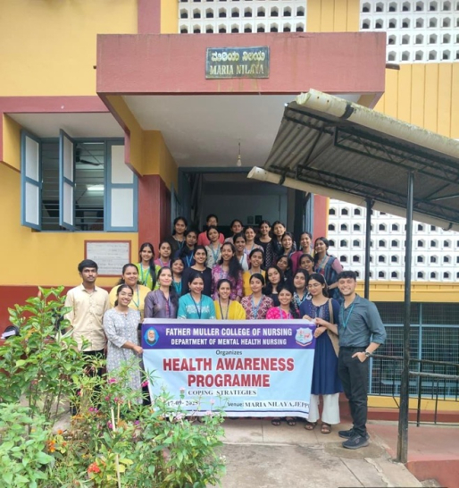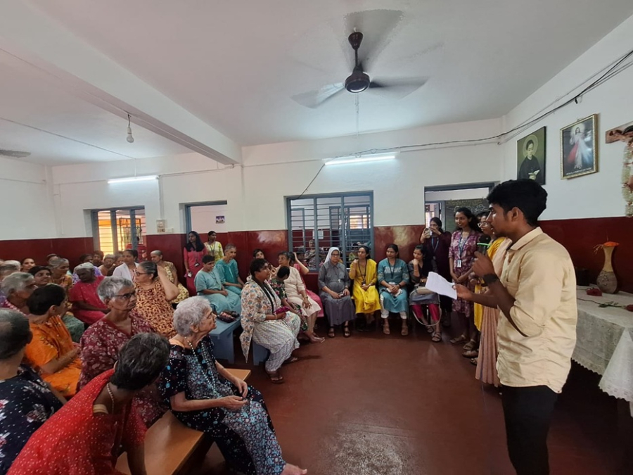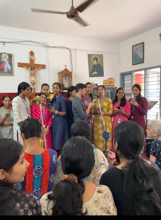 The Department of Mental Health Nursing, Father Muller College of Nursing along with the students of VI Semester B.Sc. Nursing, organized an extension activity at Maria Nilaya, Jeppu on 17th September 2025 from 10:30 am to 12:00 noon. The event began with a prayer song and a welcome address, followed by a series of cultural activities including group songs, group dance, a duet song, an action song, and a role play on coping skills, which highlighted the importance of resilience in daily life. The programme also included lucky games, which the participants well received. A noteworthy aspect of the programme was the active involvement of the inmates, who enthusiastically presented dance and singing performances. Their participation added liveliness and inclusiveness to the event. The activity created a platform for interaction, joy, and mutual learning, while also emphasizing the importance of mental health, coping skills, and community engagement.