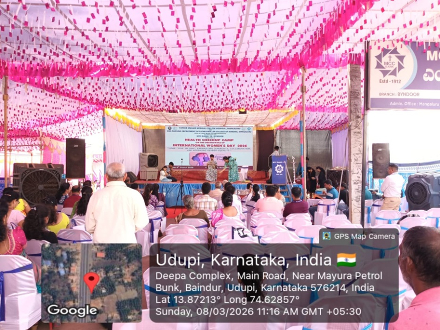 The Father Muller Medical College Hospital and the Department of Obstetrics and Gynaecology, Father Muller College of Nursing in collaboration with the MCC Bank, Byndoor, organized a Free Health Camp on March 8, 2026, to mark the International Women’s Day. The program was held from 8:45 a.m. to 1:30 p.m., and the theme was “Give to Gain.” Ms Suneetha Merlin, Assistant Professor, served as the Organising Secretary, while Ms Nitha M Coelho, Assistant Professor, was the Resource person for the session. A skit highlighting the theme was performed by the seventh-semester B.Sc. Nursing students, adding a creative dimension to the event. A total of 270 people were benefitted in this camp.