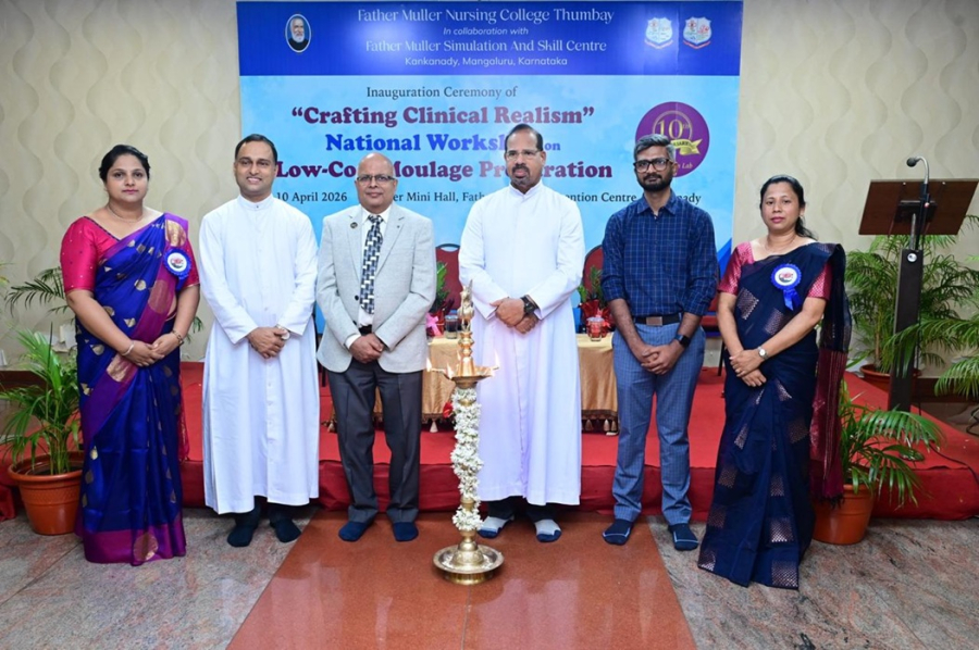 Father Muller Nursing College Thumbay, in collaboration with the Father Muller Simulation and Skill Centre, units of Father Muller Charitable Institutions, successfully inaugurated one-day national workshop titled “Crafting Clinical Realism” on Low-Cost Moulage Preparation on April 10, 2026, at the Muller Mini Hall, Kankanady. The workshop also marked the 10th anniversary celebration of the Simulation Lab. Notably, this workshop marks the second standalone moulage workshop of its kind conducted independently in the country, facilitated by the same expert resource persons who had led the first workshop at AIIMS Guwahati.